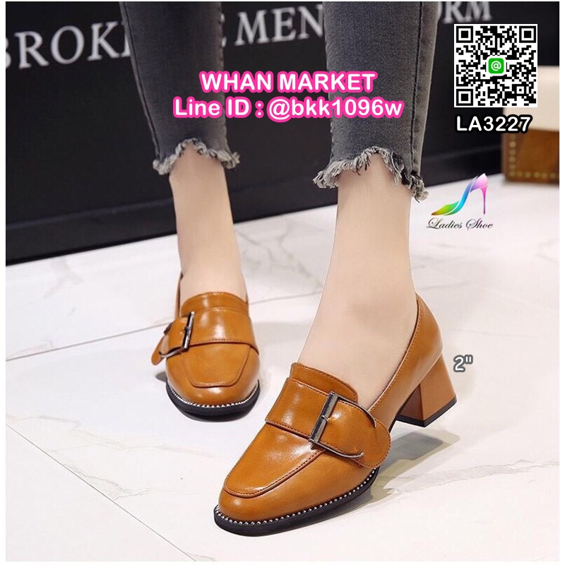 WhanMarketรองเท้าคัชชู ส้นสูง ทรงหัวตัด วัสดุหนังเทียมนิ่ม ด้านในซับผ้า ส้นสูง 2 นิ้ว กำลังดี แต่งเข็มขัดด้านหน้า (เป็นแบบยางยืดเพิ่มความกระชับ) ทรงสวม