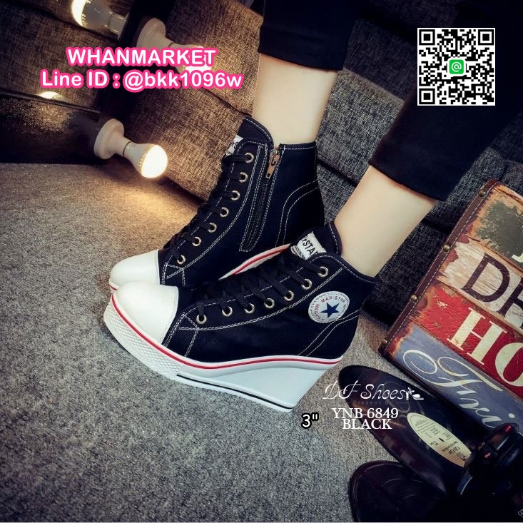 WhanMarketรองเท้าผ้าใบหุ้มข้อ เสริมส้น งานนำเข้า วัสดุผ้าแคนวาส ส้นPU มีซิปด้านข้าง ใส่ง่าย ทรงสวย ฮิตขนาดนี้ รีบสั่งกันนะคะสาวๆ