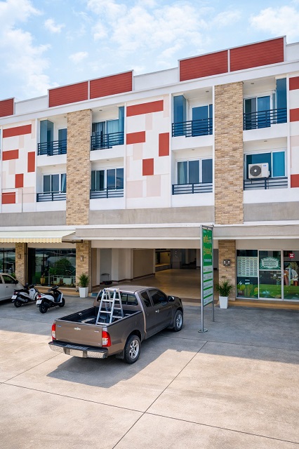 25% off from 25,000 baht. Phanthong Hospital 600meters. 3.5 story commercial building For rent 19,999 B-M. in Phan Thong Chonburi 3 bed 3 bath 600 from Phan Thong fresh market strong structure 18 sq.wa. 230 sq.m. located on main road excellent for business or residential use convenient transportation near Amata City Industrial Estate 900 m. and large community