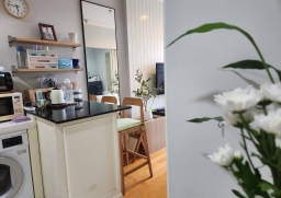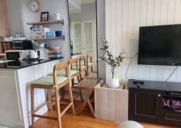 เฟอร์นิเจอร์พร้อมอยู่ โซฟา เคาเตอร์ครัว และมุมทานอาหาร