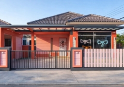 ให้เช่าบ้านเดี่ยว 2นอน ต่อเติมหลังคาโรงจอดรถ ศรีมหาโพธิ 1น้ำ 304 อบต.ท่าตูม 950ม. 49 ตร.ว.