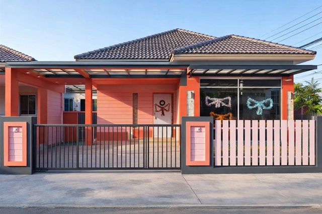 บ้านเดี่ยวชั้นเดียว ต่อเติมหลังคาโรงจอดรถ