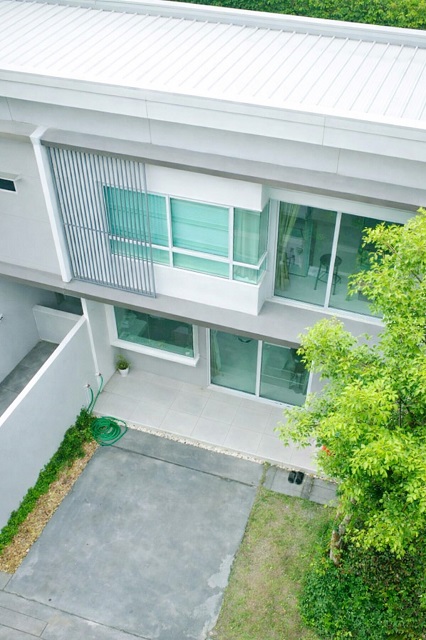 ทาวน์เฮ้าส์ 2 ชั้น สไตล์โมเดิร์น ออกแบบให้โปร่งโล่ง พื้นที่ใช้สอยคุ้มค่า พร้อมสวนส่วนตัวหน้าบ้าน