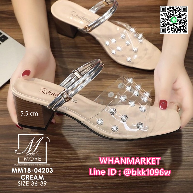 WhanMarketรองเท้าลำลองแฟชั่น งานนำเข้า วัสดุหนัง pu สายคาดหน้าแบบใส แต่งหมุดหนามสีเงิน เลือกใส่ได้ 2 แบบทั้งรัดข้อและแบบสวม 2 ตอน ส้นเป็นสี่เหลี่ยมใหญ่ สูง 5.5 CM. ใส่สบาย เดินง่าย Match ได้กับทุกชุด เป็นไอเท็มที่ไม่ควรพลาด สินค้ามาจำนวนจำกัด ช้าอด หมดนะคะ