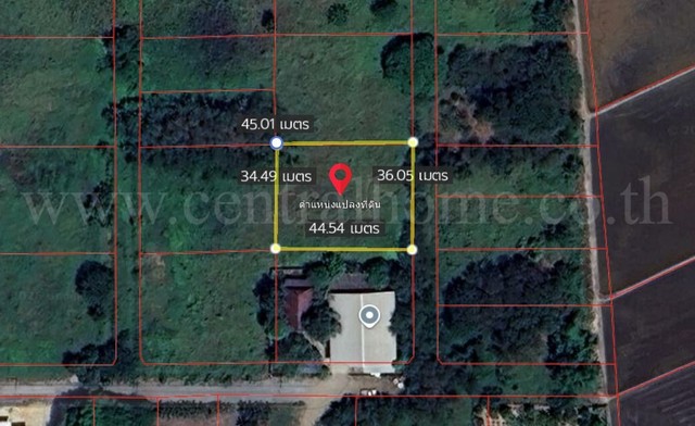 - ที่ดินเปล่า 1 ไร่ หน้ากว้าง 37.56 เมตร ลึก 43.31 เมตร