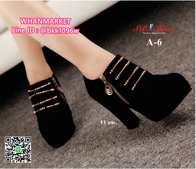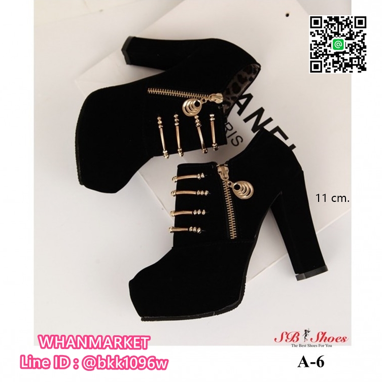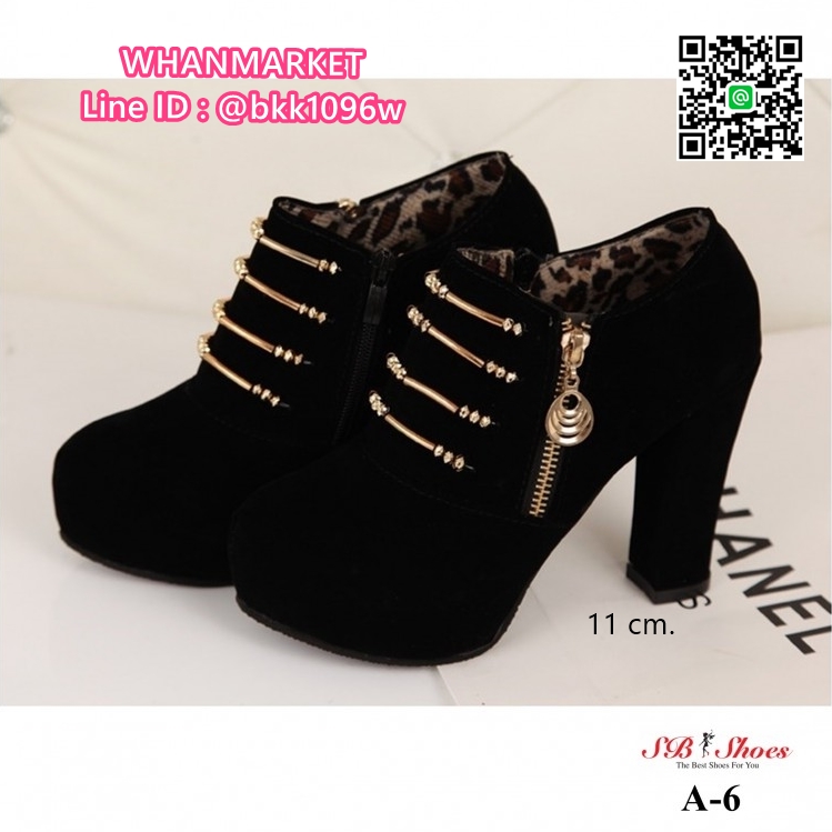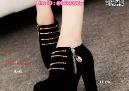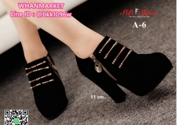 WhanMarketรองเท้าบูทส้นสูง 11 cm. งานนำเข้า วัสดุหนังกลับอย่างดี แต่งอะไหล่สีทอง ใส่สบายด้วยซิปข้าง สไตล์เกาหลี งานเกร๋มาก ทรงสวย น้ำหนักเบา ไอเท็มที่ไม่ควรพลาดนะคะ