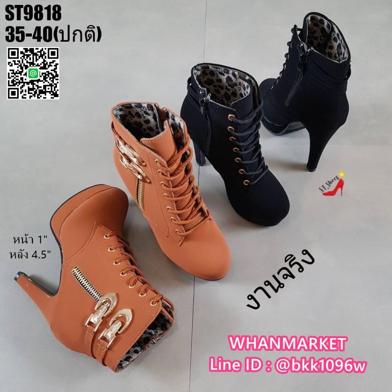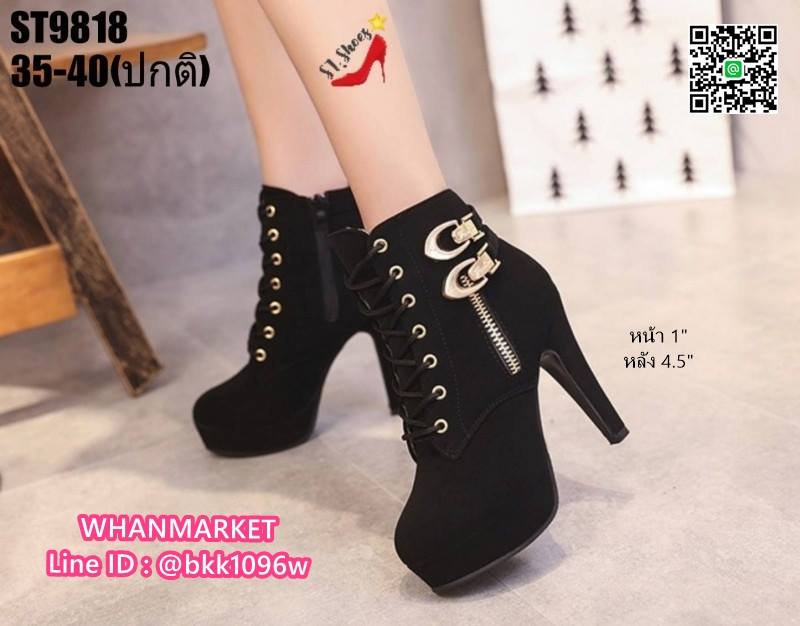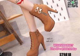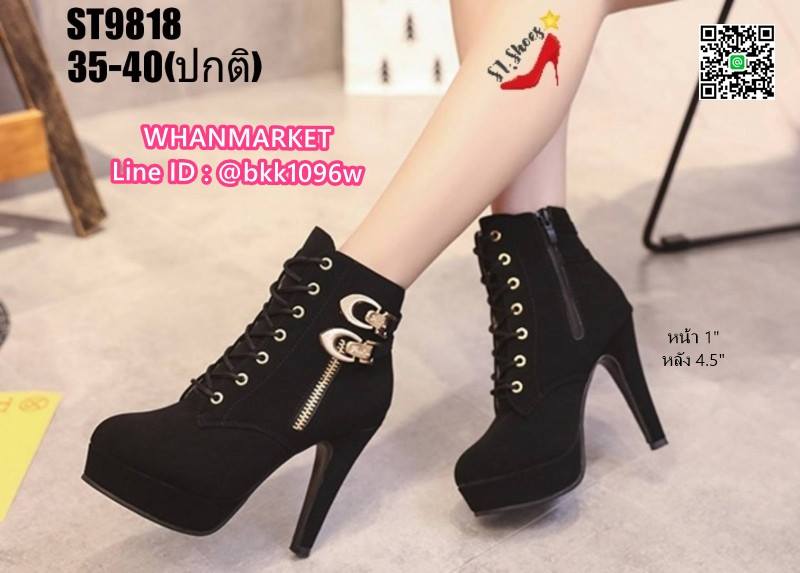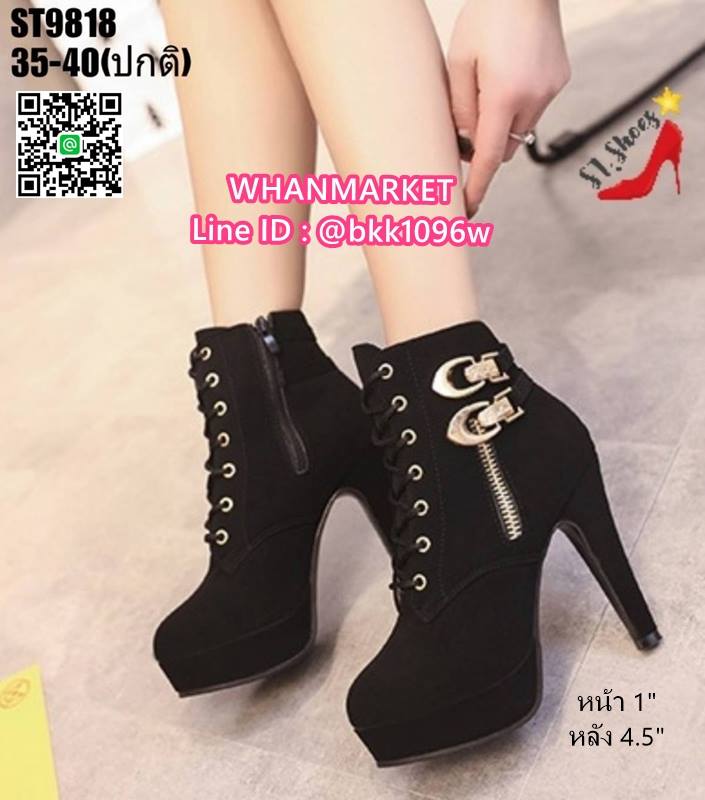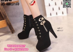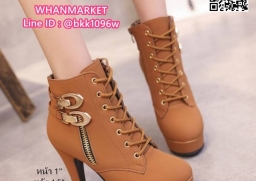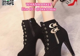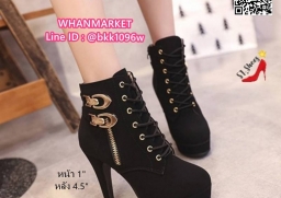 WhanMarketรองเท้าบูทส้นสูง 4.5 นิ้ว วัสดุหนังชามัวร์นิ่ม มีซิปข้าง สวมใส่ง่าย ด้านในบุผ้าสบายเท้า มีเชือกปรับได้ น้ำหนักเบามาก แต่งอะไหล่สีทอง สวยหรู เสริมหน้า 1 นิ้ว ส้นหลัง 4.5 นิ้ว งานสวยมากแถมเท่ สไตล์สาวนอก แฟชั่นนำเข้า รออะไรคะ สั่งกันได้เลยจร้า