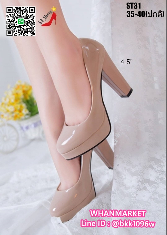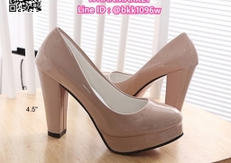 WhanMarketรองเท้าคัชชูส้นแท่ง 4.5 นิ้ว งานนำเข้า วัสดุหนังแก้วแวววาว ทรงหัวมน ส้นแท่งเดินยืนสบาย ใส่แล้วช่วยเสริมช่วงขาให้ดูยาวเรียว แบบใส่ได้ตลอด งานสวย ดูดี สั่งเลยจร้า