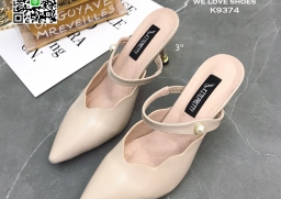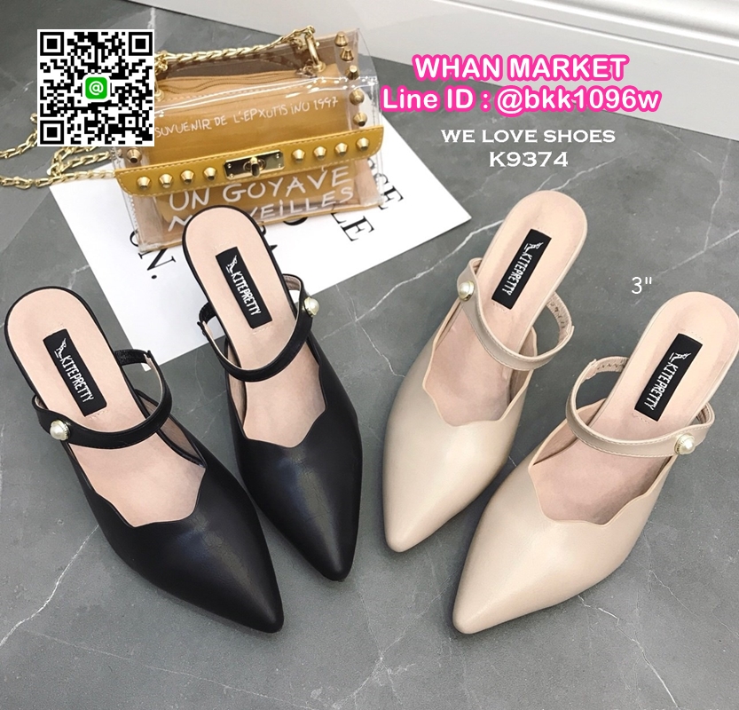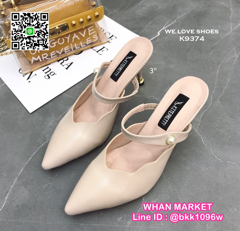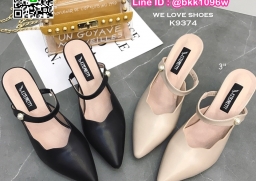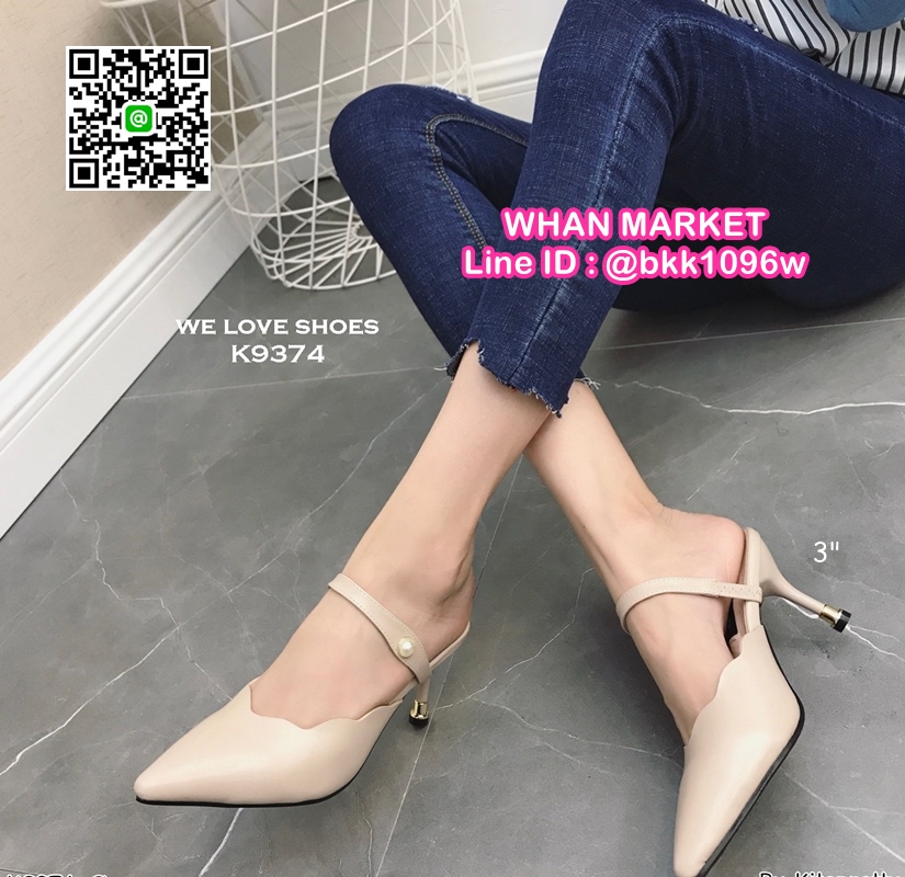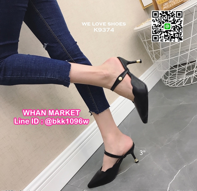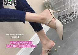 WhanMarketรองเท้าส้นสูง 3 นิ้ว เปิดส้น ปลายแหลมหุ้ม มีสายคาดหน้าเท้า ดีไซน์สวย วัสดุหนัง PU งานสวย สูงกำลังดี สาวๆรีบจัดด่วนค่ะ
