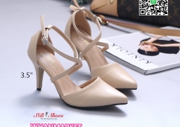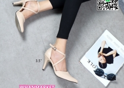 WhanMarketรองเท้าส้นสูงเปิดข้าง ส้นเข็ม หัวแหลม ทรงสวย สูง 3.5 นิ้ว วัสดุหนัง PU คาดหน้าแบบไขว้ พื้นนิ่ม น้ำหนักเบา ไอเท็มที่ไม่ควรพลาดค่ะ