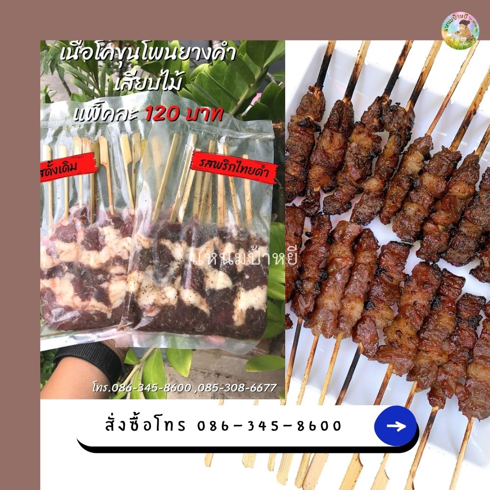 • #เนื้อโคขุนโพนยางคำ แบบเสียบไม้ หมักปรุงรสแล้วเรียบร้อย
