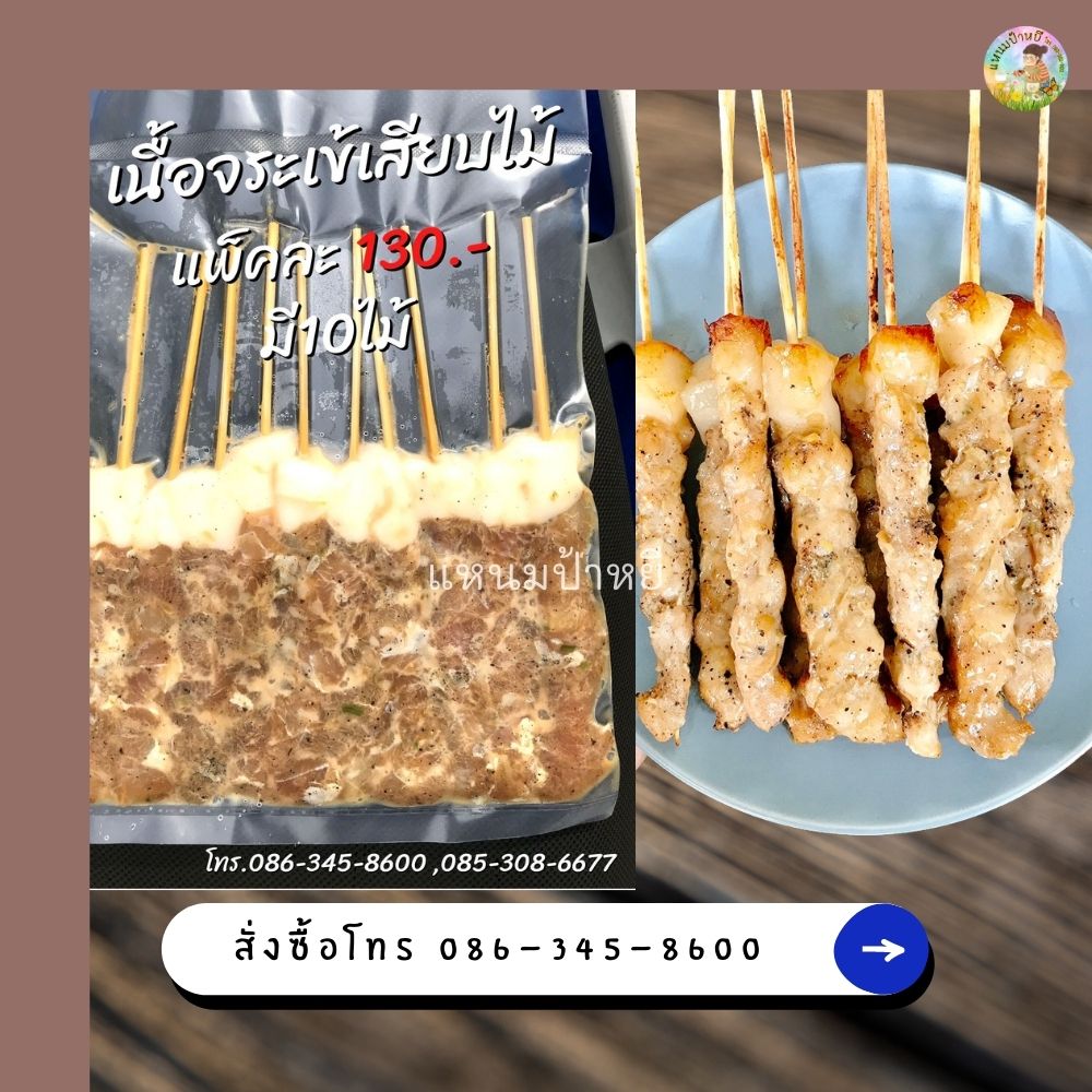• เนื้อจระเข้เสียบไม้ หมักสูตรนมสดพริกไทยดำ