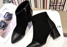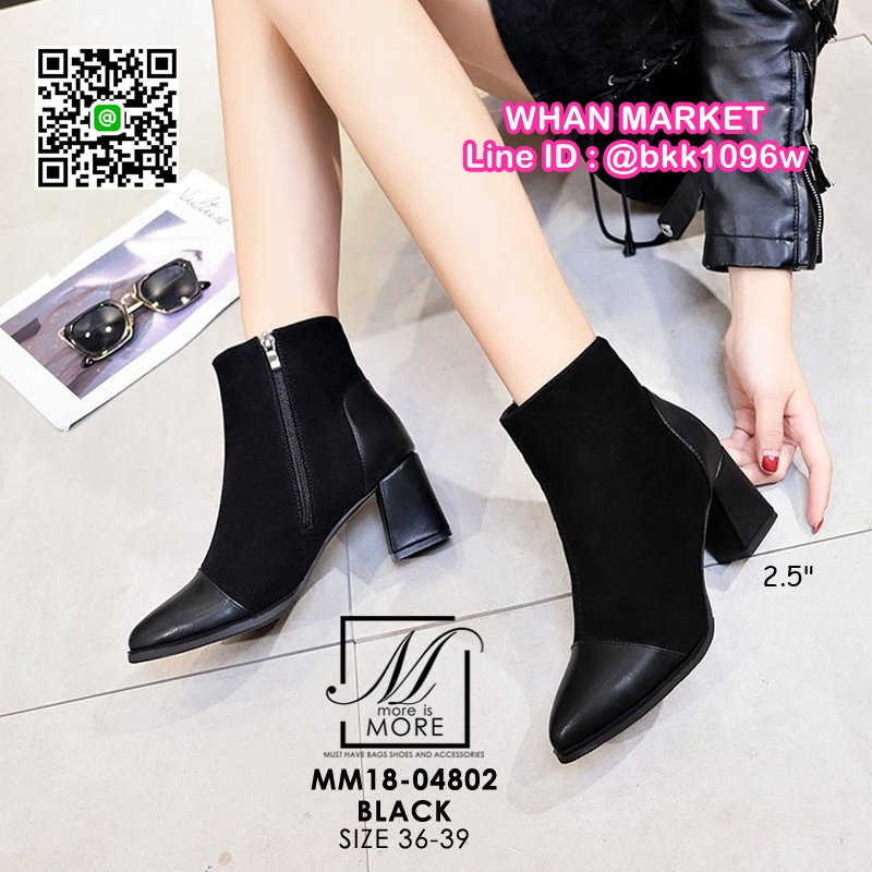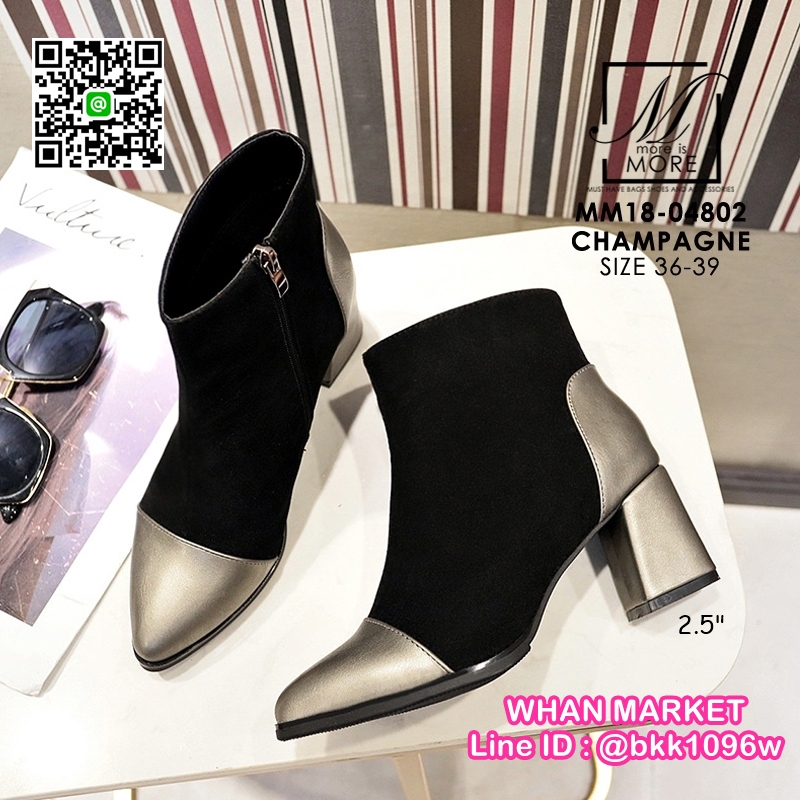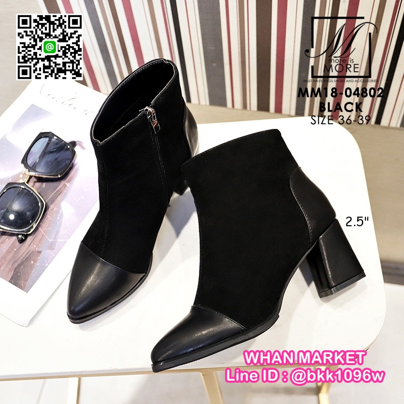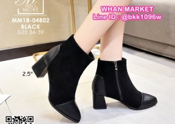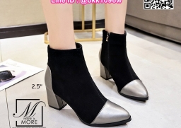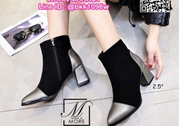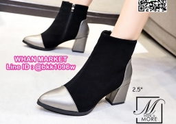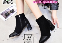 WhanMarketรองเท้าบูทส้นสูง 2.5 นิ้ว แฟชั่นนำเข้า ทรงหัวแหลม วัสดุสักหลาด แต่งหนัง pu ที่หัวรองเท้าและส้น ใส่ง่ายด้วยซิปข้าง ดีไซน์เก๋ส์ ส้นแบบใหญ่ เดินสบาย สินค้ามีจำนวนจำกัด สาวๆ รีบจับจอง ช้าอด หมดนะคะ
