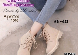 WhanMarketรองเท้าบูทแฟชั่น วัสดุหนังกลับนิ่ม มีเชือกด้านหน้าปรับกระชับเท้า น้ำหนักเบา ใส่สบายมาก พื้นด้านนอกยางอย่างดี นำเข้าคุณภาพ สไตล์เกาหลี ไอเท็มที่ไม่ควรพลาดนะคะ