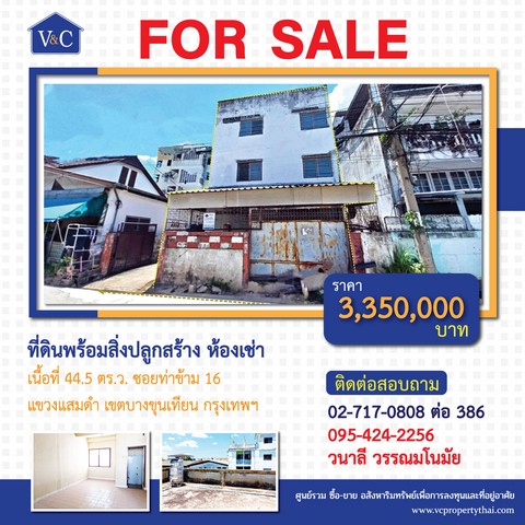 Wanalee Wanmanomaiขายกิจการห้องเช่า เนื้อที่ 44.5 ตร.ว. 20 ห้องนอน ซ.ท่าข้าม 16 ถ.ท่าข้าม แขวงแสมดำ เขตบางขุนเทียน กรุงเทพฯ