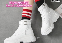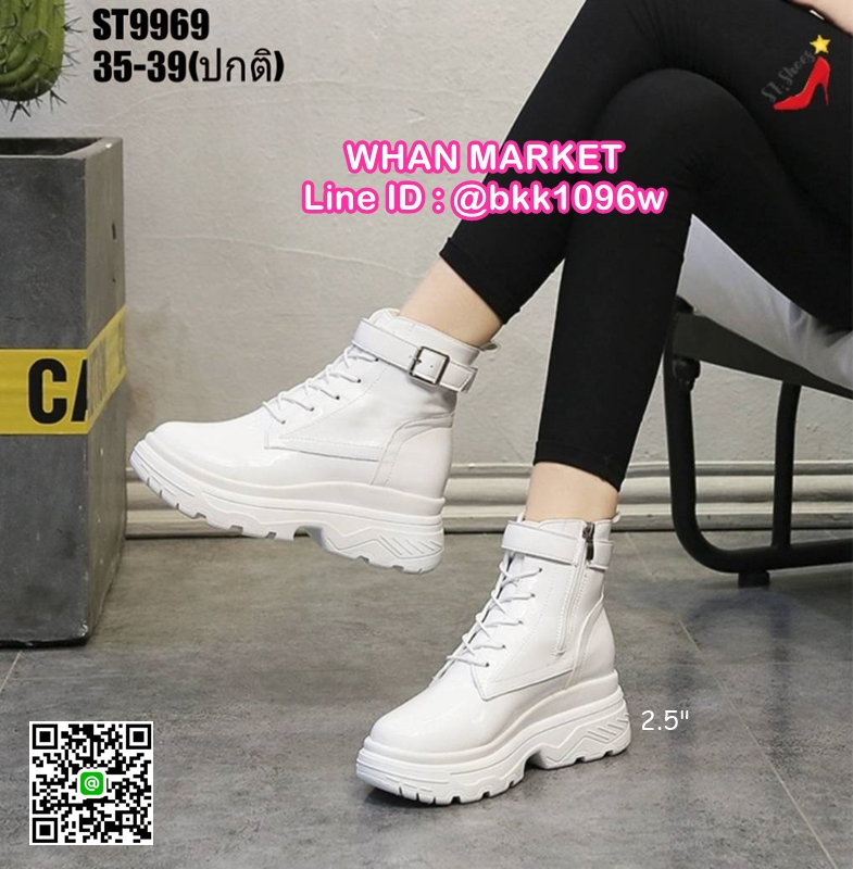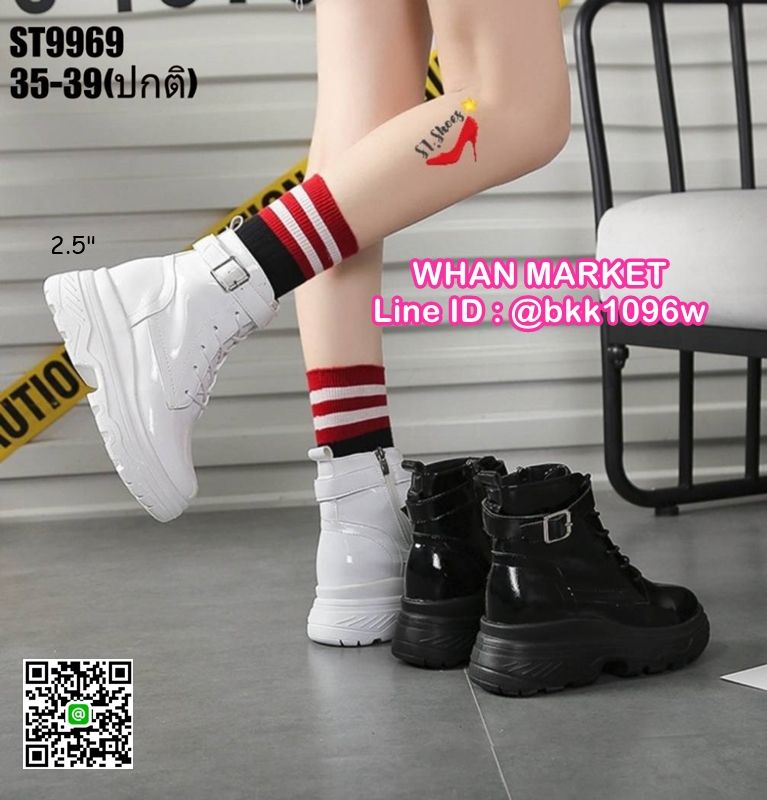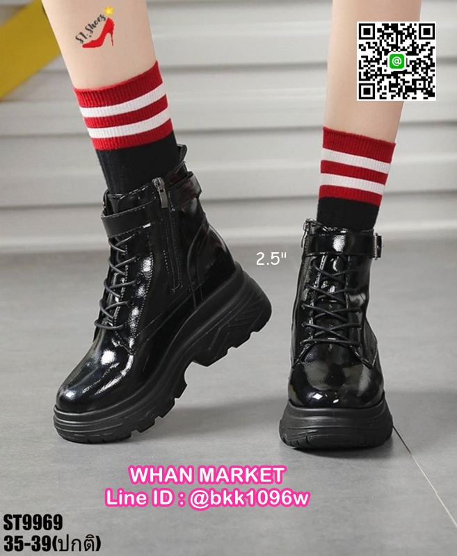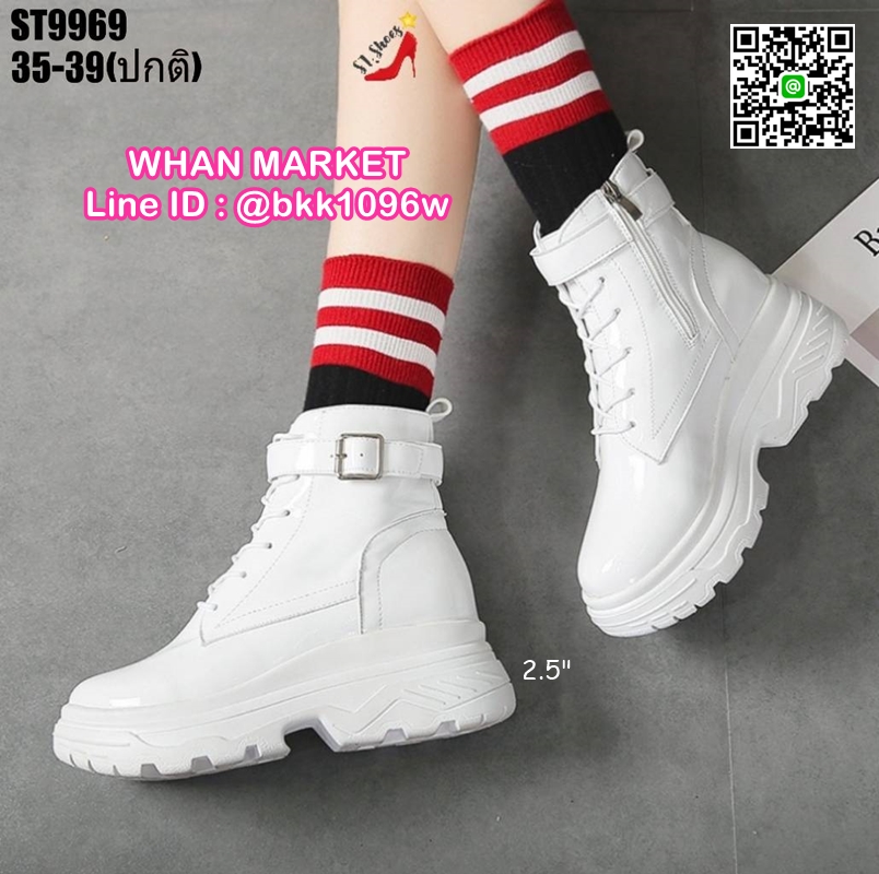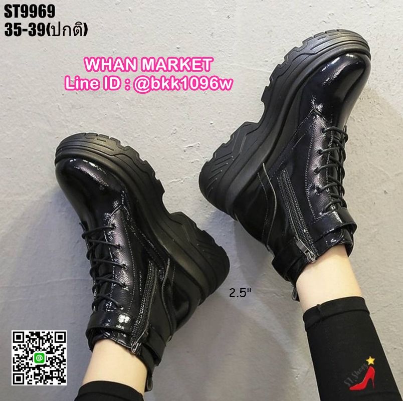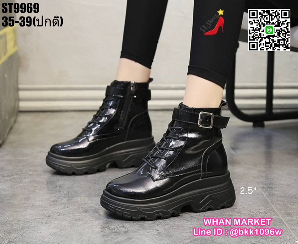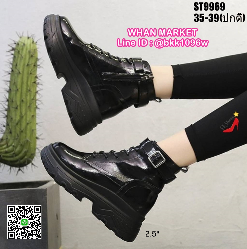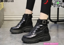 WhanMarketรองเท้าบูทหุ้มข้อสูง เสริมส้น 2.5 นิ้ว วัสดุหนังเงาแวววับ หนังนิ่มใส่สบาย มีซิปข้าง สวมถอดสะดวก งานเท่แต่เข็มขัดรัดข้อ พื้นนุ่มเด้ง ใส่สบายฝุดๆ พื้นยางกันลื่น น้ำหนักเบามาก งานสวย งานนำเข้า รีบสอยด่วนๆจร้าาา