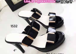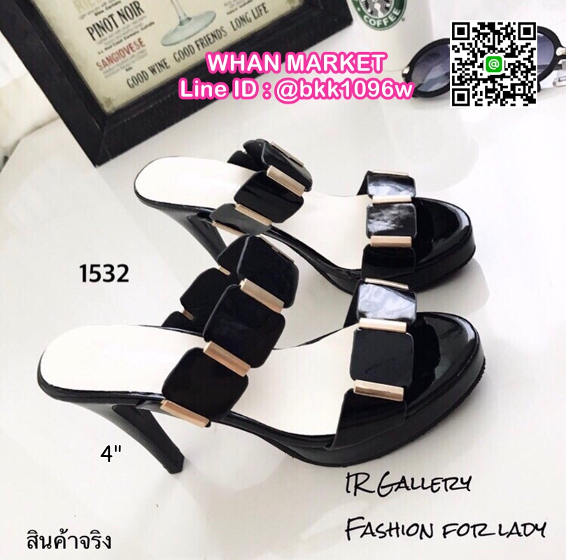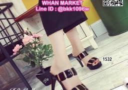 WhanMarketรองเท้าส้นสูง วัสดุหนังเงานิ่ม แต่งอะไหล่ทองแบบสวมคาด 2 ระดับ ส้นเข็มสูง 4 นิ้ว เสริมหน้า 0.5 นิ้ว แบบสวย นำเทรนด์ รีบสั่งกันเลยค่ะ