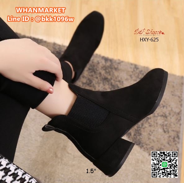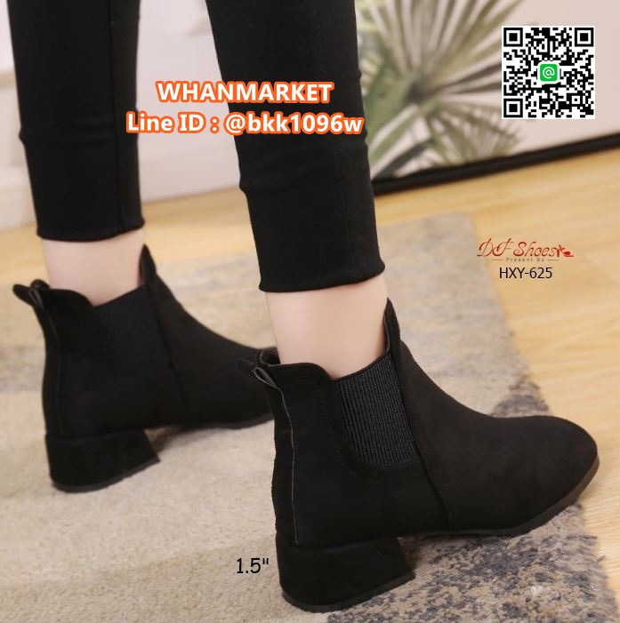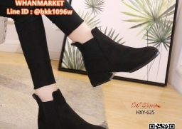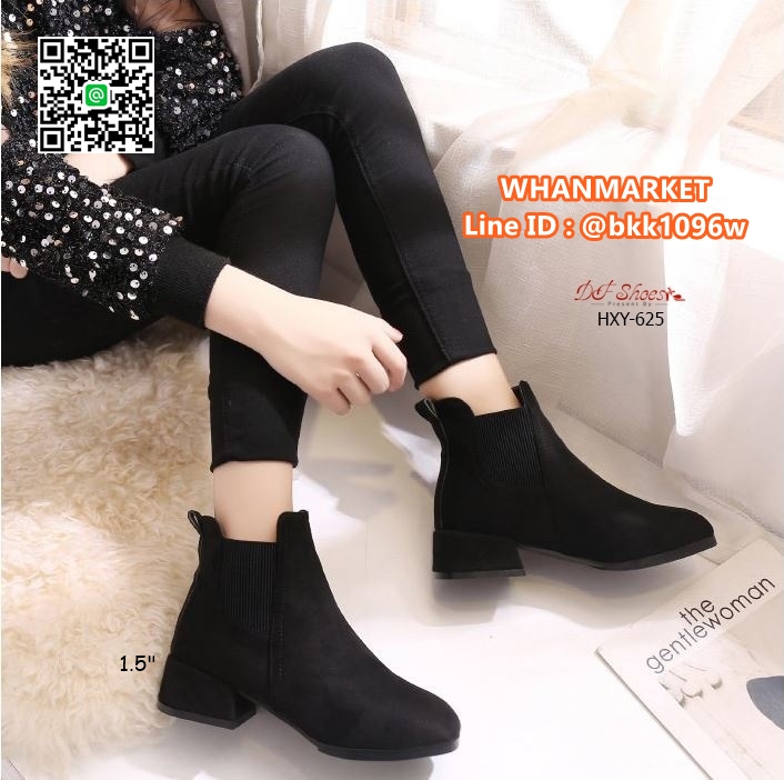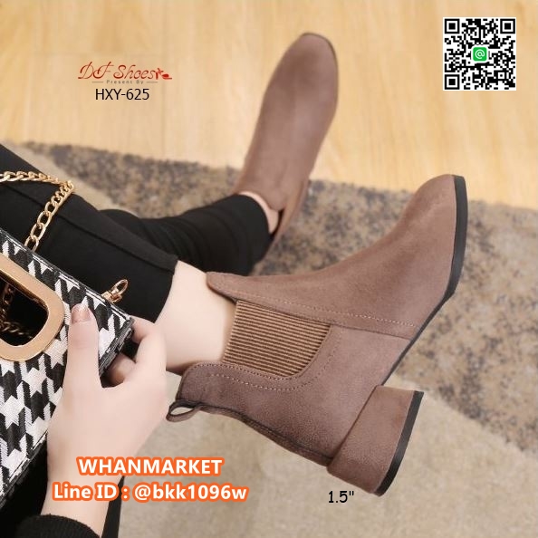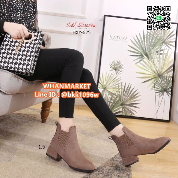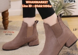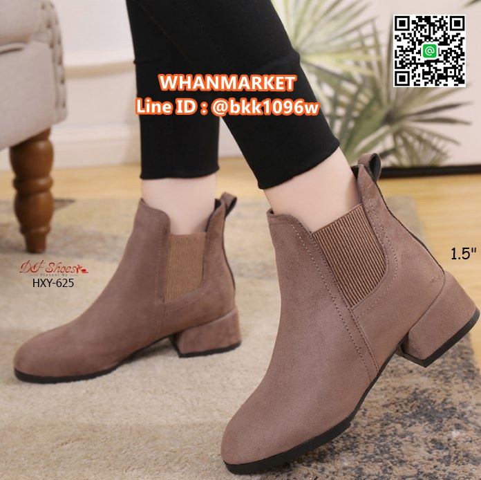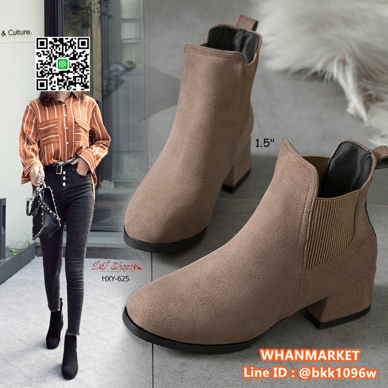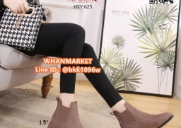 WhanMarketรองเท้าบูทส้นสูง 1.5 นิ้ว งานนำเข้า วัสดุหนังชามัวร์ ส้นตันไม่สูงมาก สวมใส่ง่าย เรียบดูดี งานสวย รีบจับจองกันน้า