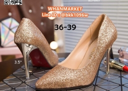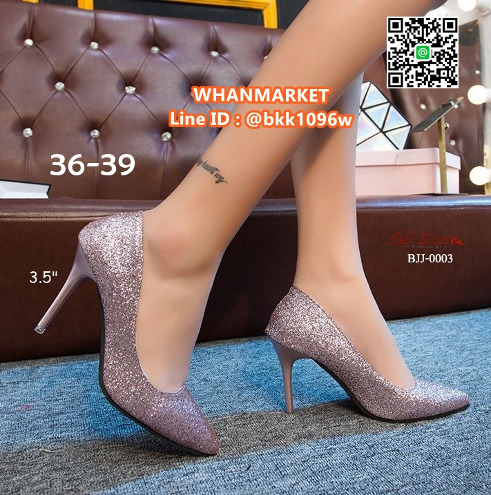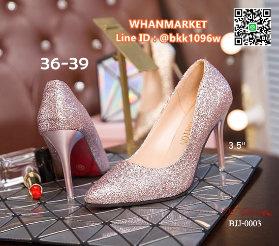 WhanMarketรองเท้าคัชชูส้นสูง 3.5 นิ้ว หัวแหลม วัสดุหนังPUบุกริตเตอร์ เล่นแสงสวยมาก ส้นเข็มสีเมทัลลิคเงา ใส่แล้วดูเพรียวสูง งานสวย งานนำเข้า หรูหราดูดี ใส่ออกงานได้เลยค่ะ