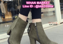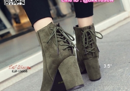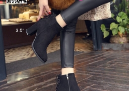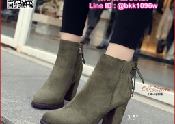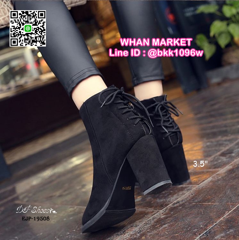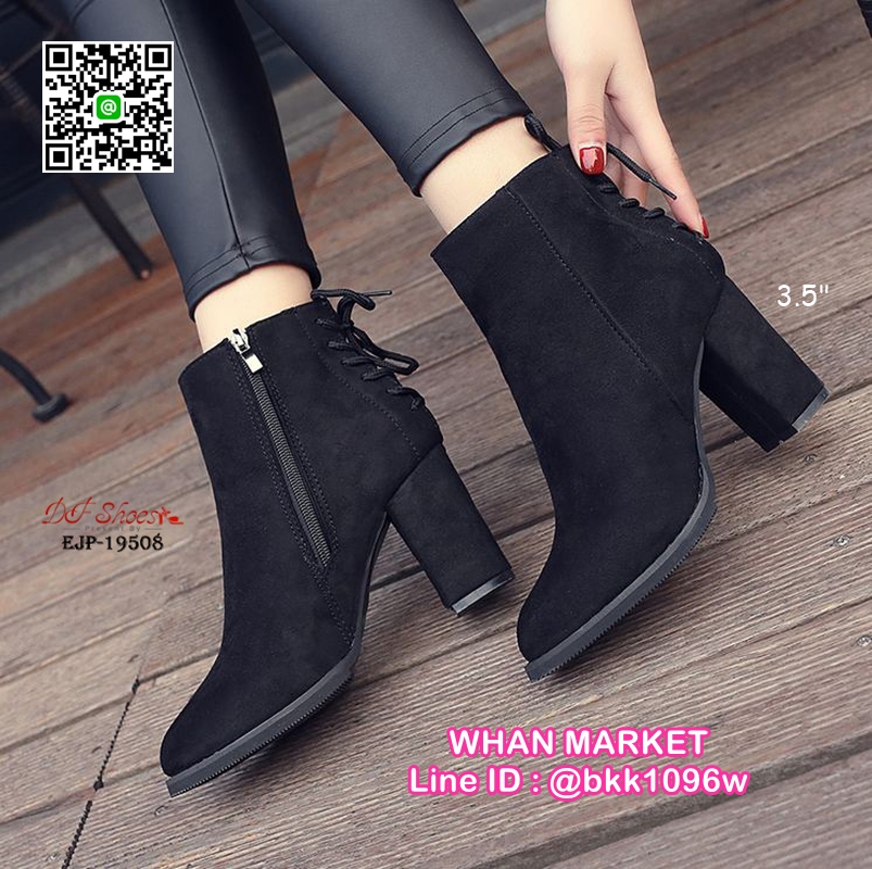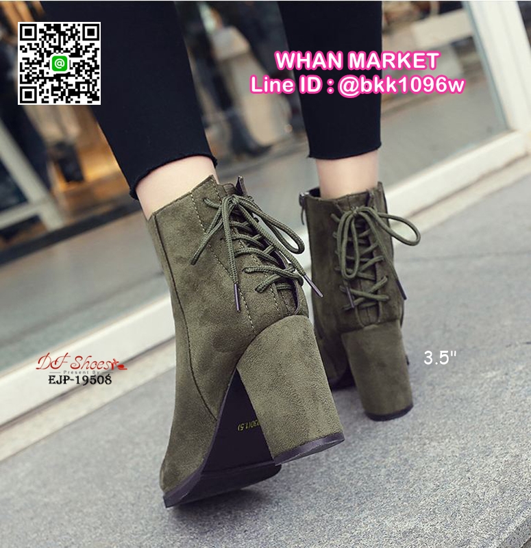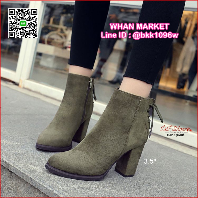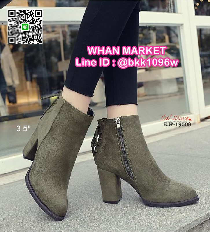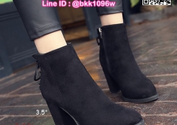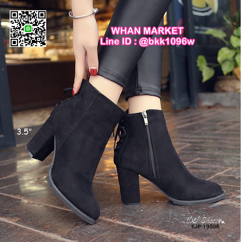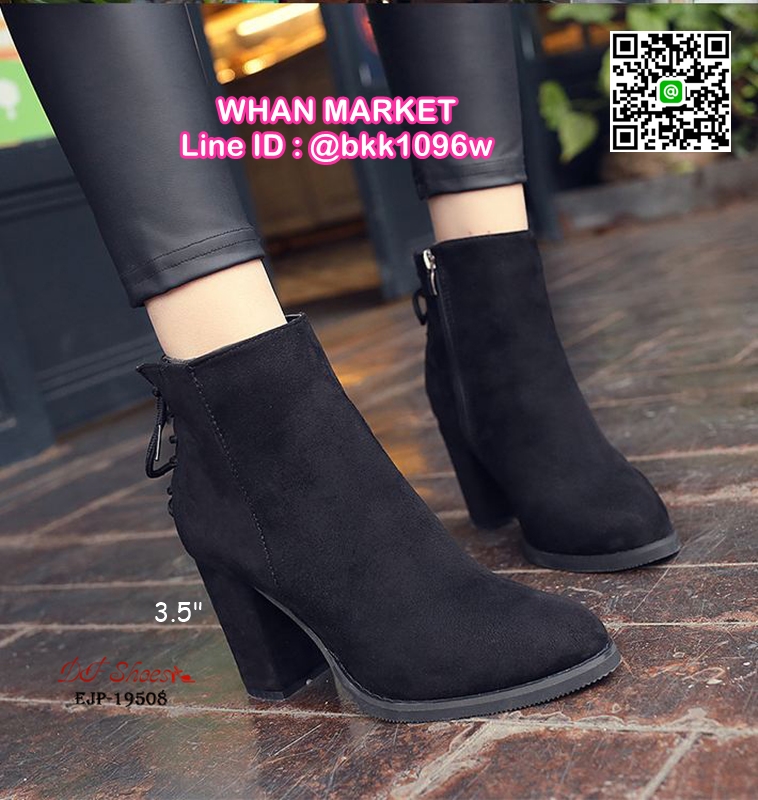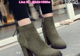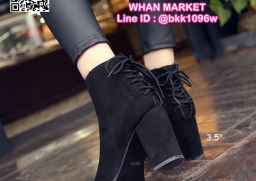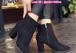 WhanMarketรองเท้าบูท ส้นสูง 3.5 นิ้ว หัวแหลม วัสดุผ้าสักหลาด ส้นตัน ดีเทลผูกเชือกด้านหลัง ใส่ง่ายเพียงรูดซิบด้านข้าง ใส่แล้วเท้าดูเรียว งานสวย รีบจับจองกันนะจ๊ะ