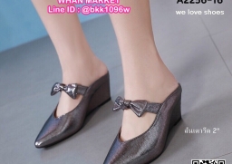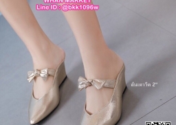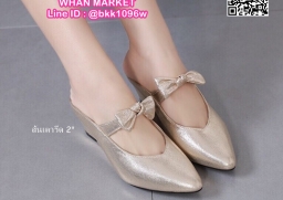 WhanMarketรองเท้าลำลองแบบสวม ปลายแหลม ผูกโบว์ด้านหน้า ส้นเตารีด 2 นิ้ว วัสดุหนังกลิตเตอร์วิ้งๆ งานสวย รีบสั่งกันเลยจร้า