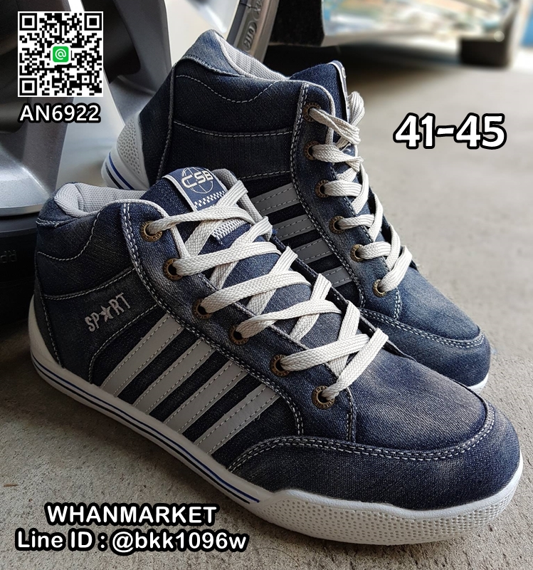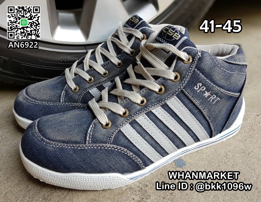 WhanMarketรองเท้าผ้าใบยีนส์หุ้มข้อ งานแฟชั่นผู้ชาย วัสดุผ้ายีนส์ แต่งด้านข้างด้วยหนังPU มีเชือกผูกปรับกระชับได้ ใส่เบาสบาย เหมาะสมในทุกโอกาส จะใส่เที่ยว ใส่ทำงานหรือออกงานก็ได้เลยค่ะ สินค้ามีจำนวนจำกัด รีบสั่งด่วนๆค่ะ