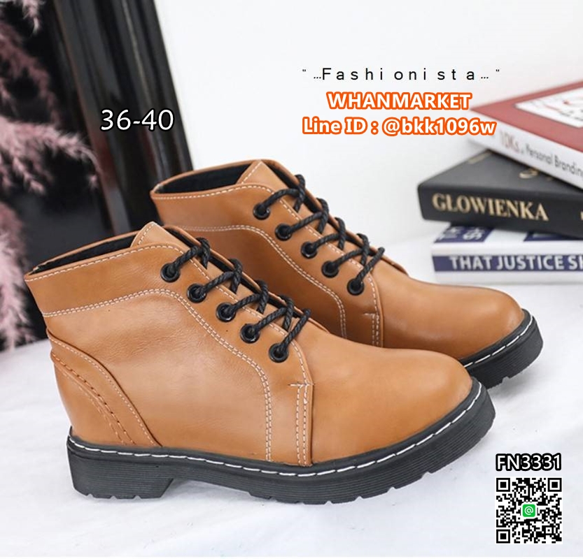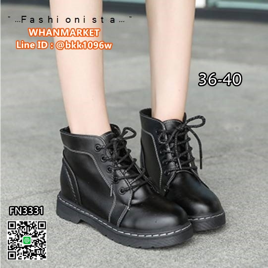 WhanMarketรองเท้าบู้ทมาร์ติน วัสดุหนัง pu หนานิ่มคุณภาพดี เจาะห่วงร้อยตาไก่ พื้นยาง 1.5 นิ้ว งานสวยเว่อร์ เดินตะเข็บเย็บแต่งดีเทลเพิ่มความเป็นแฟชั่น ใส่นุ่ม เดินง่ายสบายเท้า สินค้าพร้อมส่งเลยไม่ต้องรอจ้า