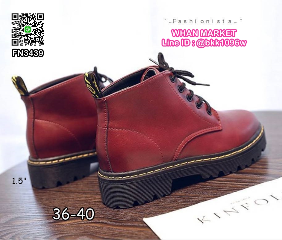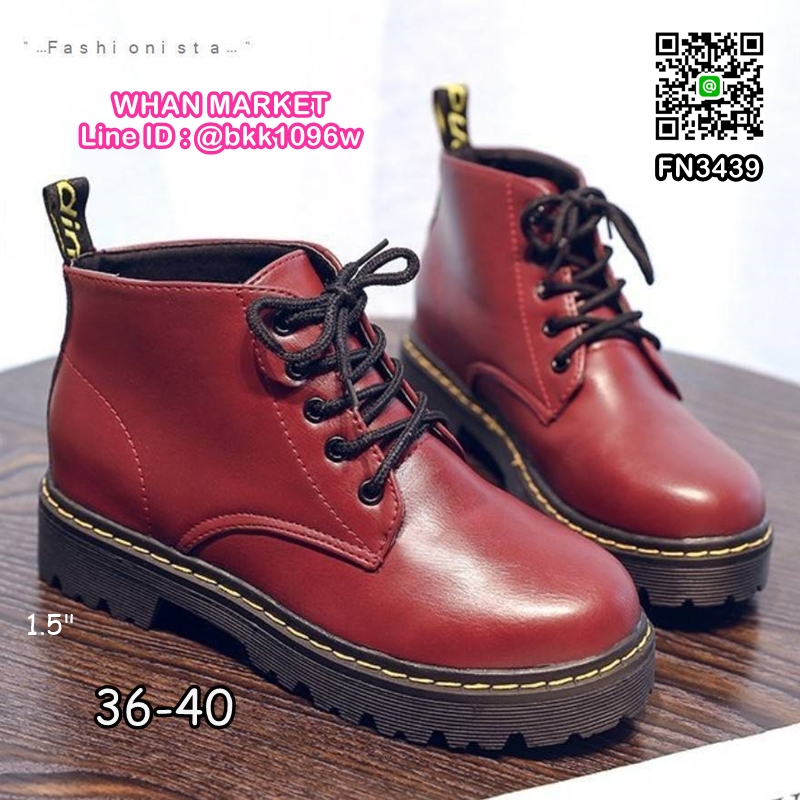 WhanMarketรองเท้าบูทแฟชั่น สไตล์มาร์ติน ทำจากหนังสังเคราะห์เนื้อหนาขึ้นทรง ภายในบุนุ่ม รุ่นนี้หนังเริ่ด ดีไซน์สวยเท่ห์มีสไตล์ เย็บแต่งตะเข็บและป้ายผ้าแท็กเพิ่มความโดดเด่นสะดุดตา พื้นหนา 1.5" ใส่สบาย นุ่มม๊ากกก รูร้อยสายเชือกตอกตาไก่แน่น งานดีคุณภาพทะลุราคา สาวกบูทใครไม่สั่งคู่นี้พลาดมากนะคะ