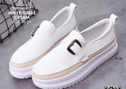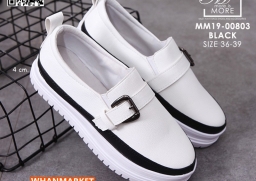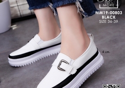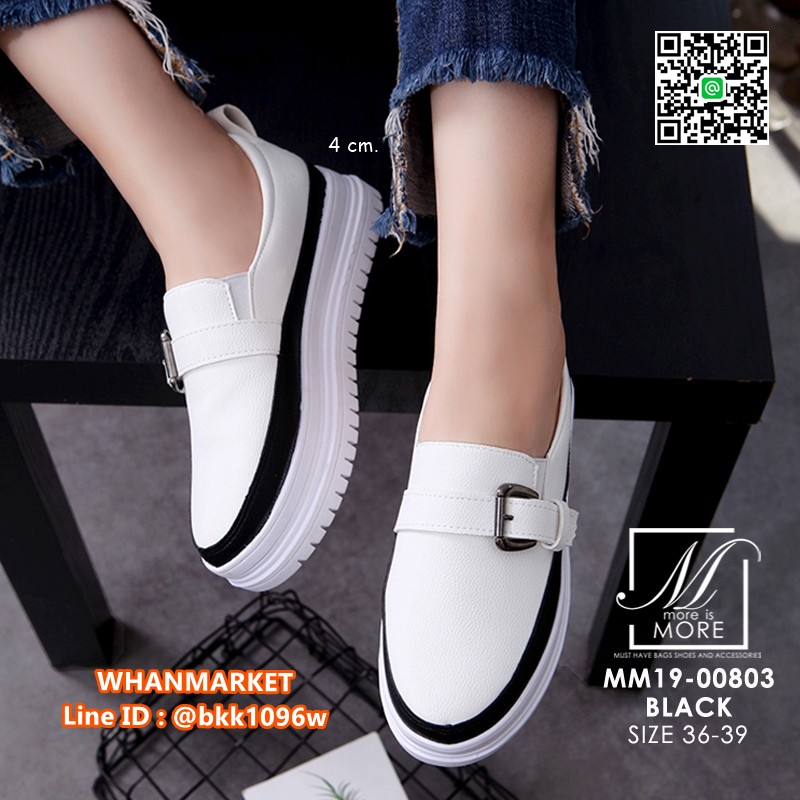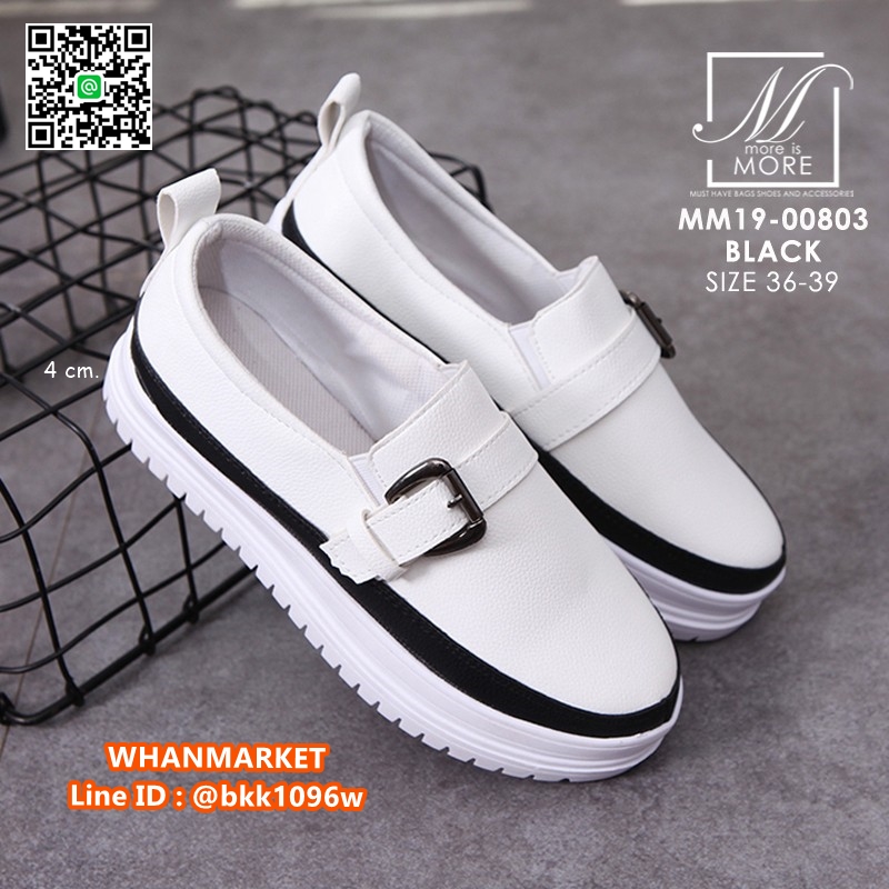WhanMarketรองเท้าผ้าใบหนัง แบบสวม แต่งเข็มขัดคาดด้านหน้า วัสดุหนัง pu ดีไซน์แนว sport สวยเท่ห์ ใส่สบาย เสริมส้นด้านใน ใส่แล้วขาเรียวสวย Match ได้กับทุกชุด สาวกผ้าใบห้ามพลาด!!