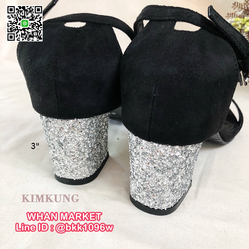 WhanMarketรองเท้าส้นสูง แบบส้นตัน สูง 3 นิ้ว ด้านหลังตกแต่งด้วยกากเพชร วิ้งๆ สวยมากๆๆคะ เป็นแบบรัดข้อเท้า ใส่สะดวก ไม่บาด ไม่เจ็บ แถมเดินง่าย ส้นไม่สูงมาก สินค้าจำนวนจำกัด รีบสั่งด่วนๆจร้า