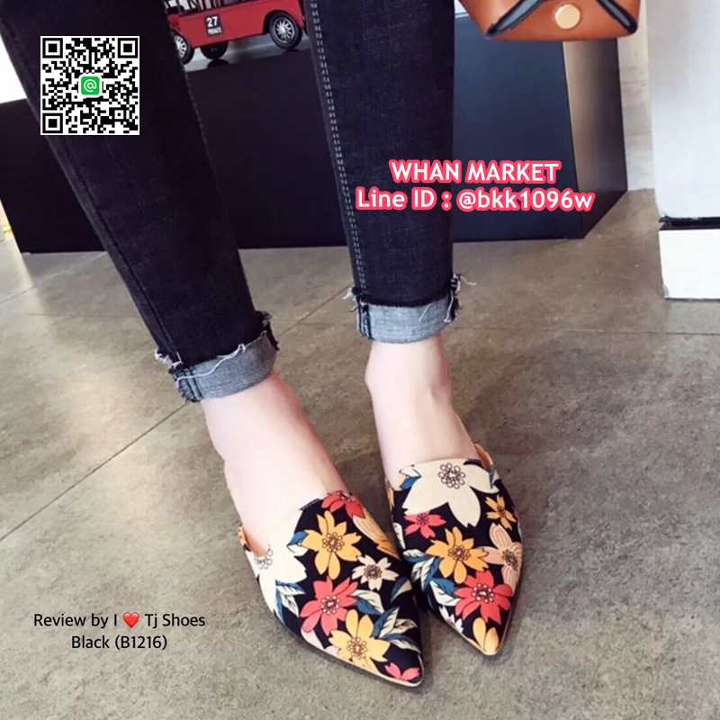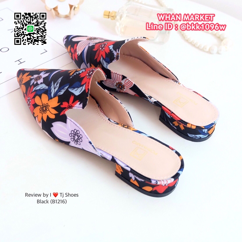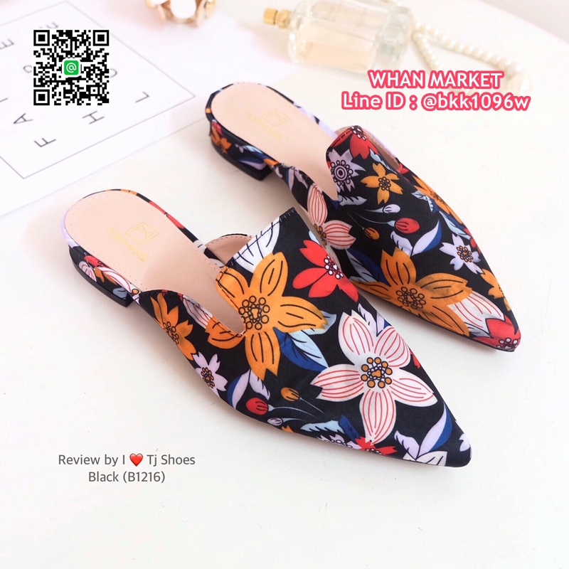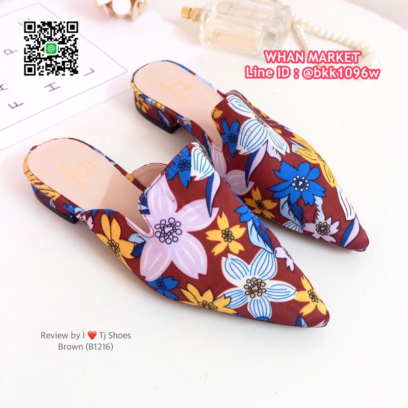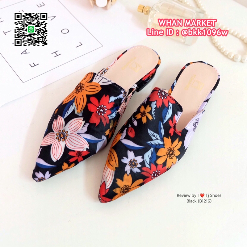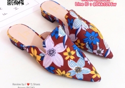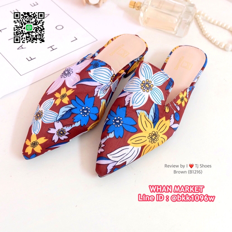 WhanMarketรองเท้าคัชชู เปิดส้น หัวแหลม วัสดุผ้าซิาตินลายดอกไม้เกร๋ๆ สวมใส่ง่าย ใส่เดินง่าย แมทกับชุดอะไรก็เป๊ะเว่อร์มาก ใส่ได้ตลอดไม่มีเอ้าท์ รีบสั่งด่วนๆเลยจร้า ช้าหมดอดเกร๋น่ะจร๊ะ (สูง1ซม.)