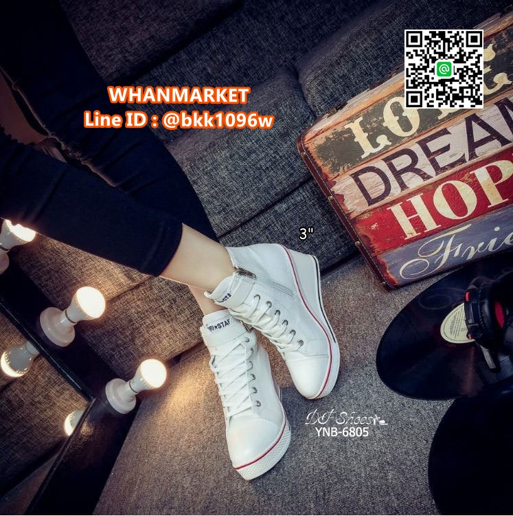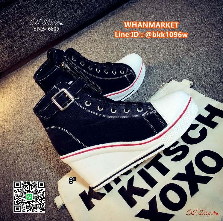 WhanMarketรองเท้าผ้าใบหุ้มข้อ เสริมส้น 3 นิ้ว วัสดุผ้าแคนวาส ส้นPU มีซิปด้านข้าง สวมใส่ง่าย คุณภาพดี ทรงสวย รีบสั่งกันนะคะสาวๆ