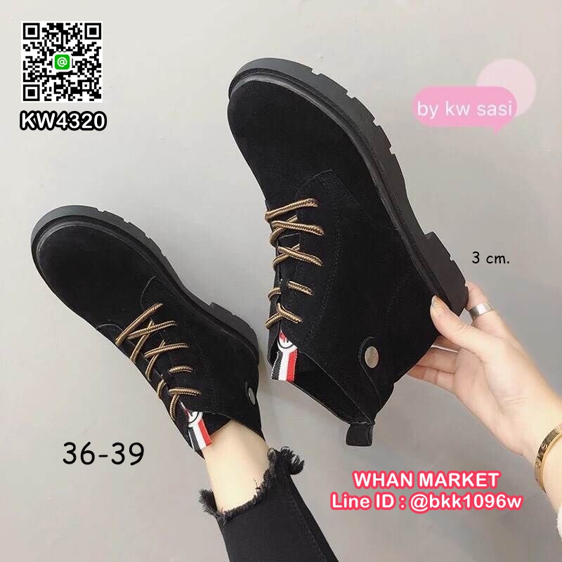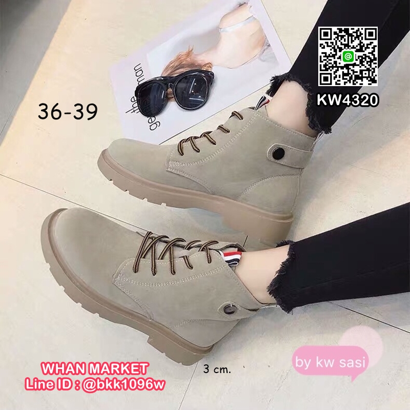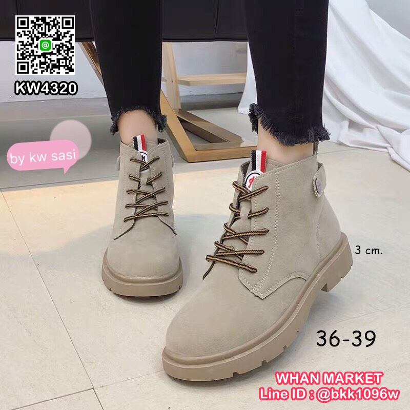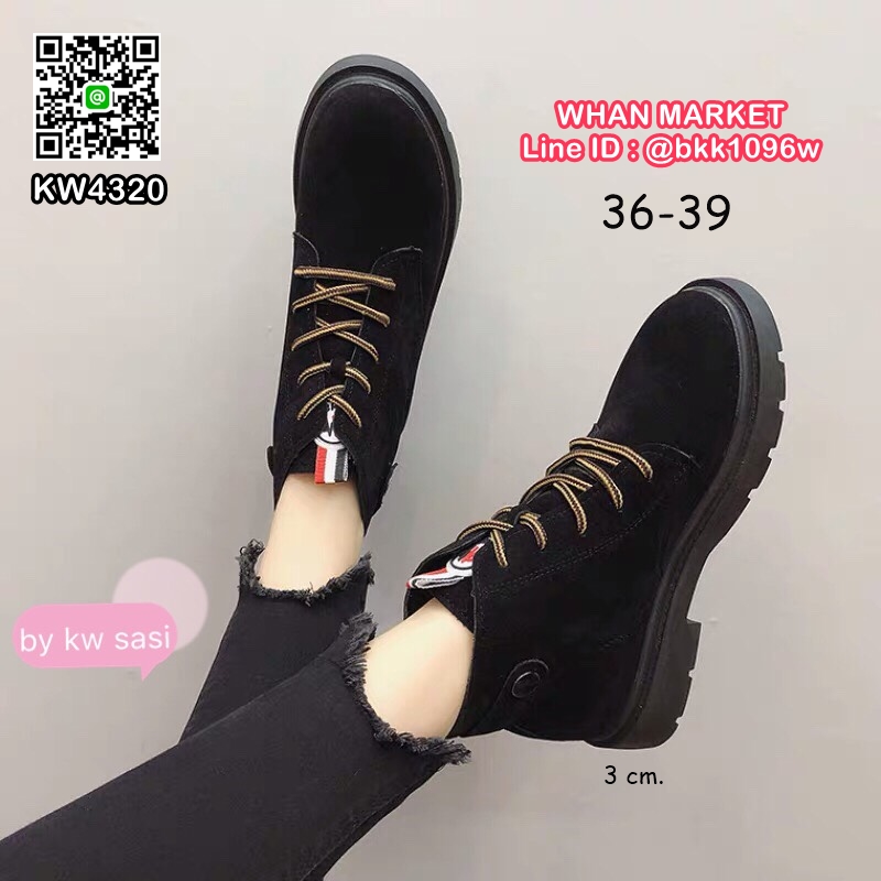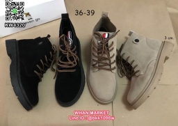 WhanMarketรองเท้าหุ้มข้อ วัสดุหนังกลับ ทรงสวยเท่เก๋ สูงส้น3cm สวมใส่สบาย พื้นกันลื่นได้ดี แมทซ์กับเสื้อผ้าได้หลายแนว สาวๆรีบจัดเลยจ้า