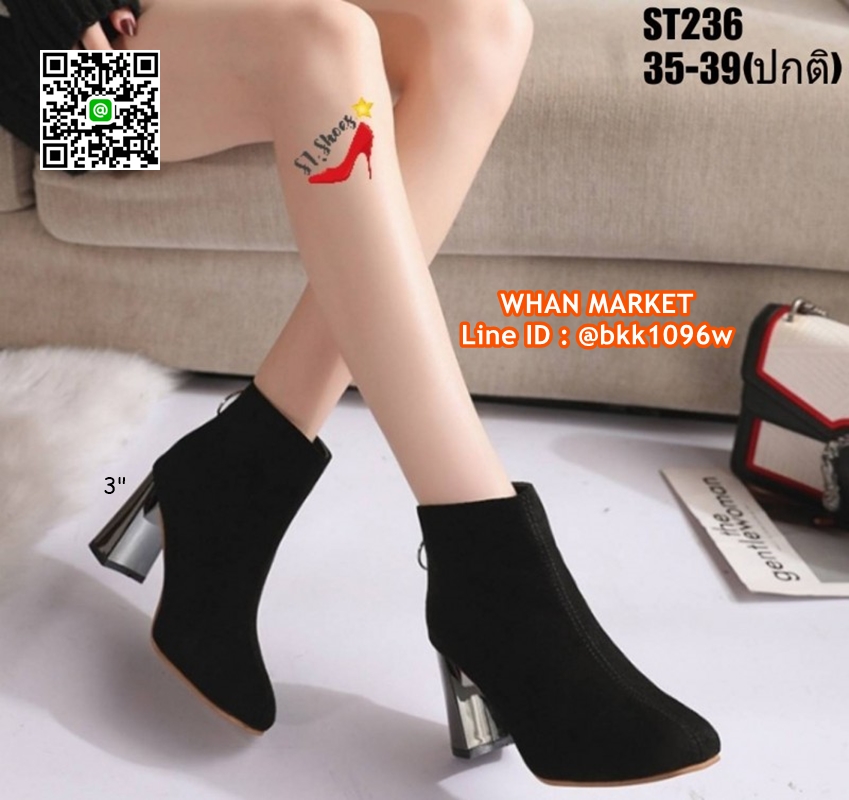 WhanMarketรองเท้าบูทหุ้มข้อสั้น ส้นสูง 3 นิ้ว วัสดุหนังกำมะหยี่ ด้านในซับขนนุ่มฟู มีซิปหลัง ใส่สบายเท้า สวมถอดสะดวก ทรงสวย หน้าทรงมน ทำให้ช่วงขาเรียวยาว ใส่กะชุดไหนก็ดูดี look hiso hiso ไม่มีไม่ได้นะจร้าา จัดไปด่วนๆเลยจร้า