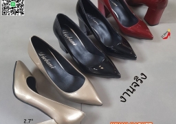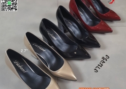 WhanMarketรองเท้าคัชชู ส้นแท่ง สูง 2.7 นิ้ว หัวแหลม วัสดุหนังแก้ว หนังแวววาว พื้นบุนุ่ม เก็บหน้าเท้าเรียวสวย แบบสุภาพ ใส่ได้ตลอด สอยไปได้เลยจร้า