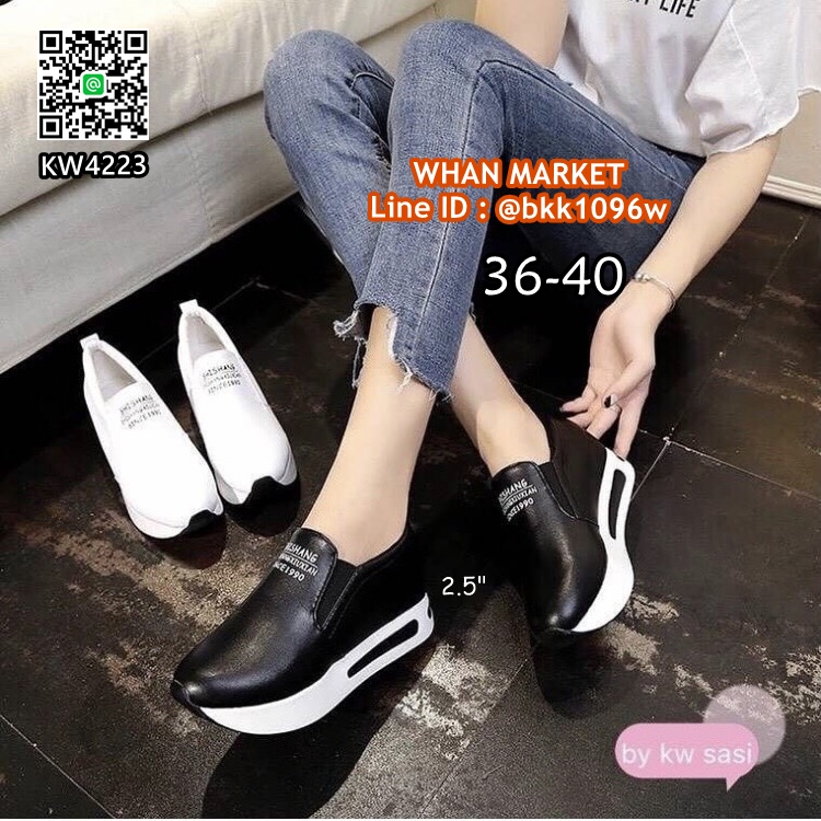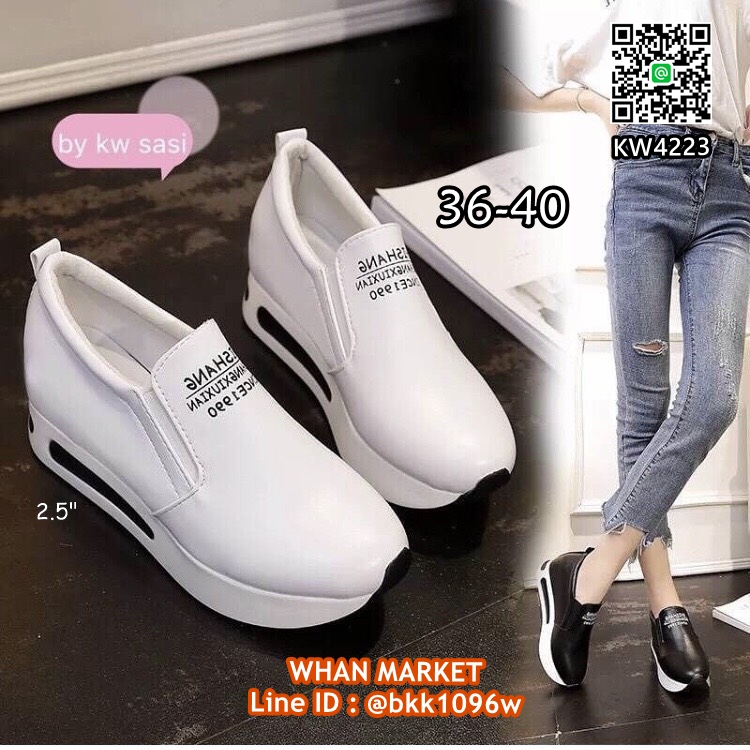 WhanMarketรองเท้าผ้าใบเสริมส้น 1.5นิ้ว เสริมภายใน 1นิ้ว วัสดุหนัง pu ทำความสะอาดง่าย น้ำหนักเบา สวมใส่สบาย งานสวย งานดี รีบจัดให้ไวเลยจร้า