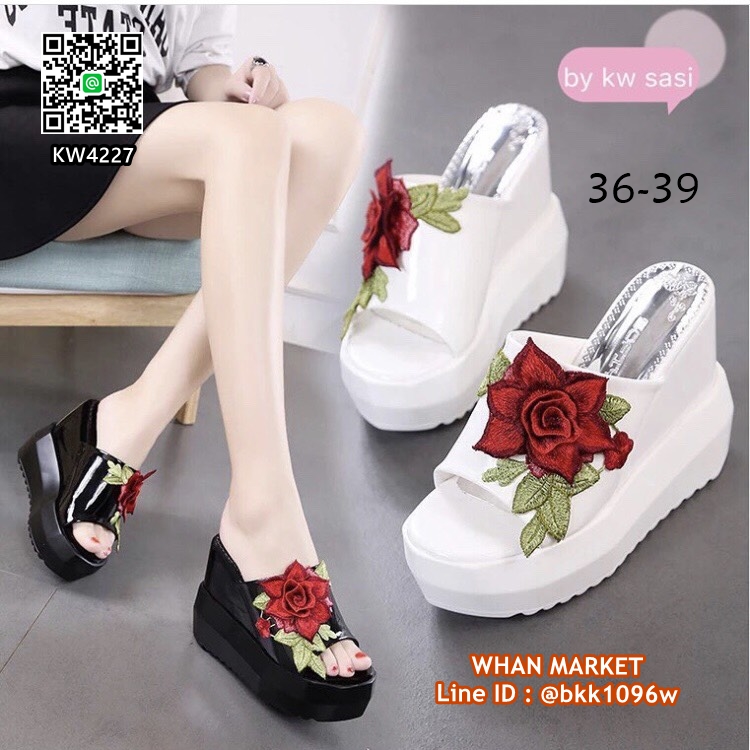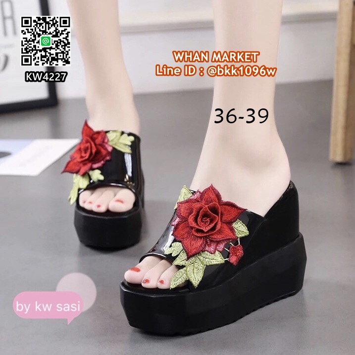 WhanMarketรองเท้าส้นเตารีด วัสดุหนังแก้ว พื้นทำจาก pu ตกแต่งด้วยลายปักดอกกุหลาบนูน งานสวยเป๊ะเว่อร์ งานนำเข้า สไตล์เกาหลี สวมง่ายใส่สบาย น้ำหนักเบา งานสวยงานดีโดนใจสาวๆที่ชื่นชอบรองเท้าส้นสูงแน่นอนจ้า