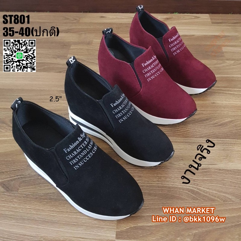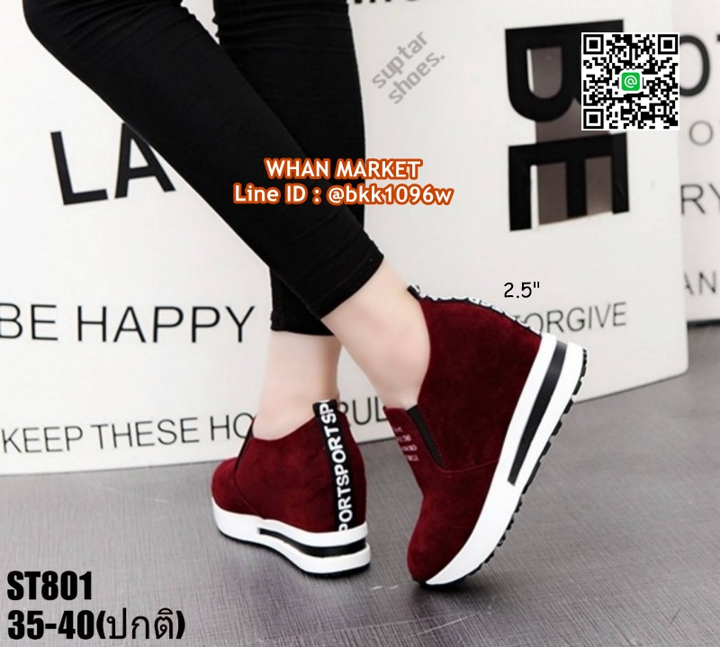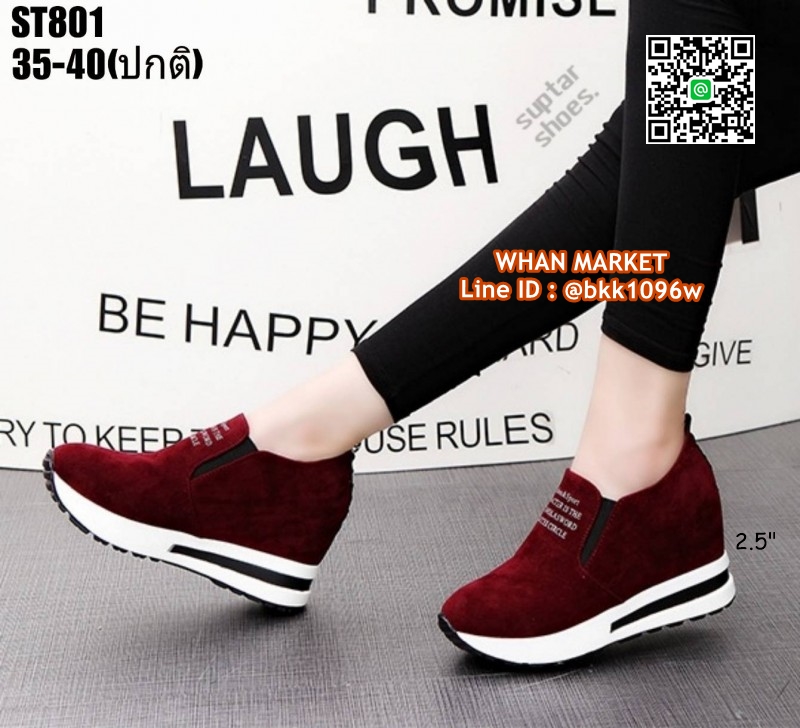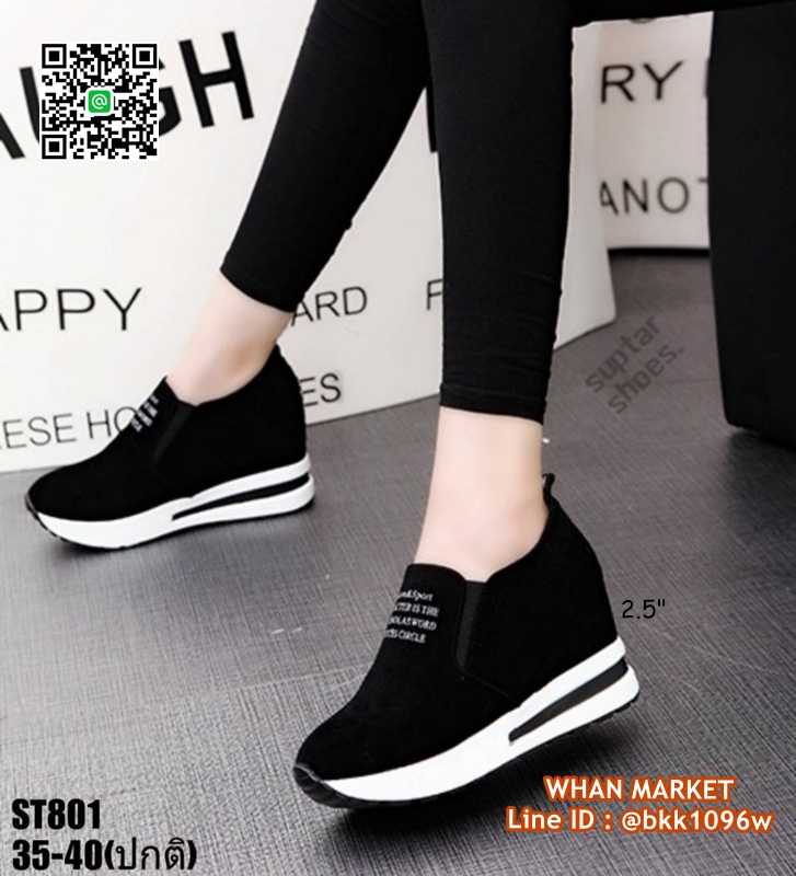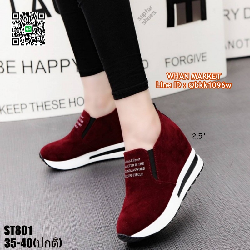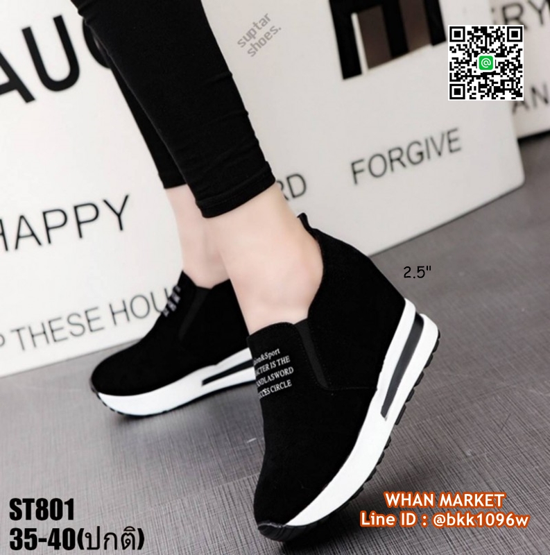 WhanMarketรองเท้าผ้าใบเสริมส้น สูง 2.5 นิ้ว วัสดุหนังสักหลาด ใส่ปุ๊ปสูงปั๊ป เสริมความสูงให้ดูสูงโปร่งได้ง่ายๆ น้ำหนักเบา ใส่สบาย ด้านหน้าเสริม 0.5 นิ้ว เสริมในหลัง 1.5 นิ้ว เสริมหลังนอก 1 นิ้ว อยากสูงเร็วทันใจแถมดูดี สอยด่วนจร้าา..