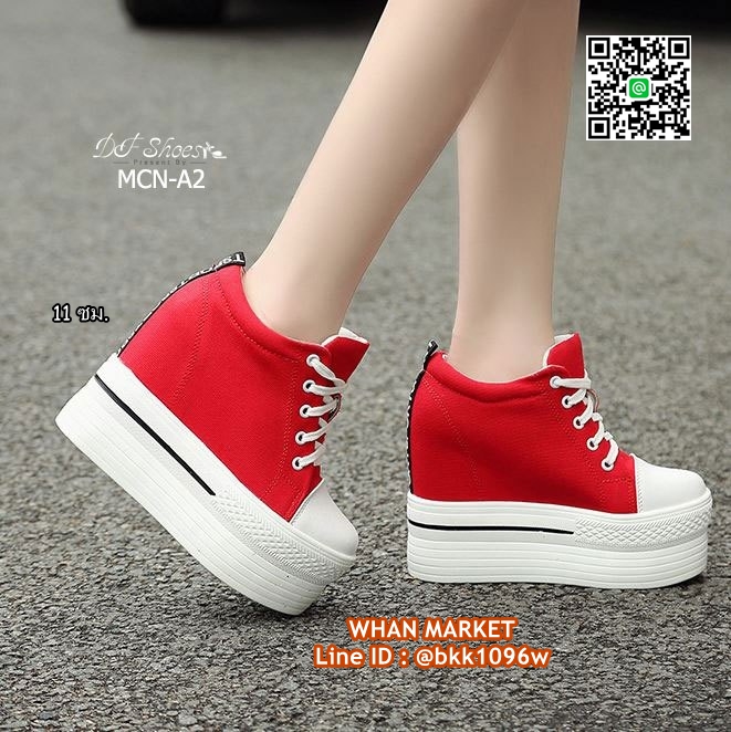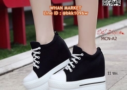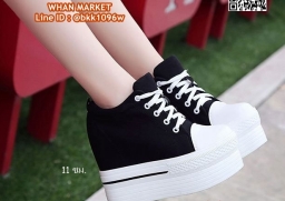 WhanMarketรองเท้าผ้าใบแฟชั่น ส้นมัฟฟิน งานนำเข้า วัสดุผ้าแคนวาส ส้นPU พื้นหนา 6 ซม. เสริมส้นด้านใน 5 ซม. ดีเทลสวยเก๋ สั่งกันเลยจร้า