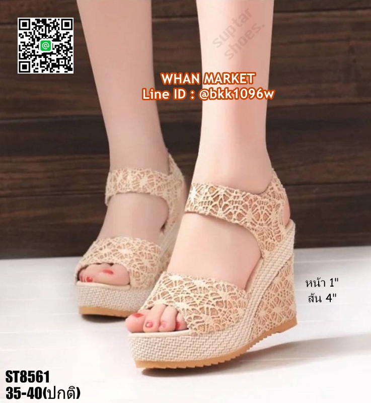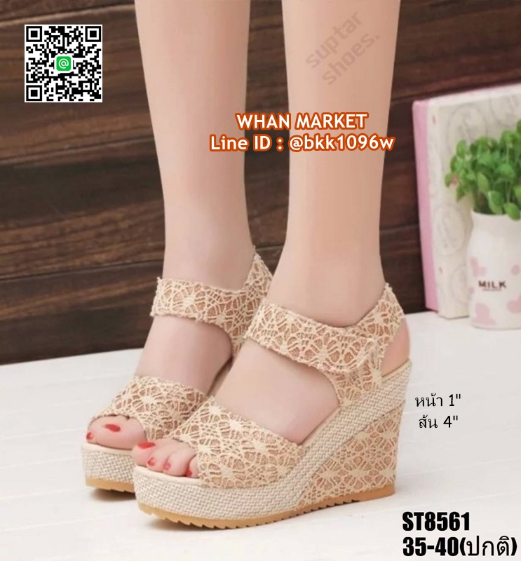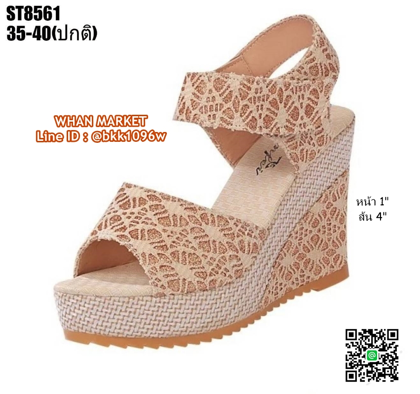 WhanMarketรองเท้ารัดข้อ ส้นเตารีด สูง 4 นิ้ว วัสดุหนังPUนิ่ม หุ้มด้วยผ้ากริตเตอร์ลายลูกไม้ ติดสายเมจิกเทป สวมถอดง่าย น้ำหนักเบามาก พื้นยางกันลื่นอย่างดี ส้นหลัง4นิ้ว เสริมหน้า1.5นิ้ว ยืนเดินสบาย งานสวยหวานน่ารัก ใส่แล้วสวย เบาสบายจร้า