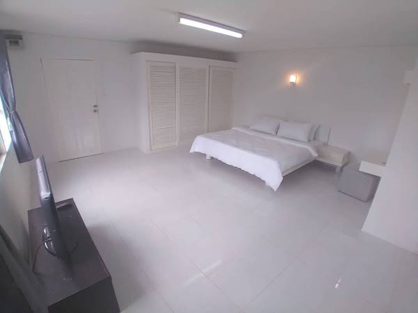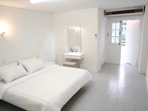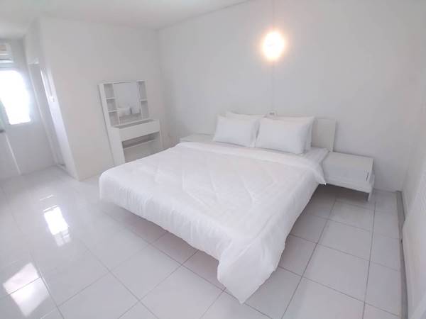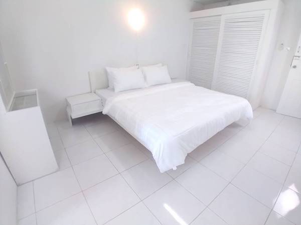 ตกแต่งด้วยเฟอร์นิเจอร์ Built-In ตู้เสื้อผ้า เตียง+ที่นอน King size โต๊ะเครื่องแป้ง โทนสีขาว สไตล์โรงแรม ห้องน้ำกว้าง แยกส่วนอาบน้ำ พร้อมอ่างอาบน้ำ เครื่องทำน้ำอุ่น มีพื้นที่ระเบียงกว้างทุกห้อง
