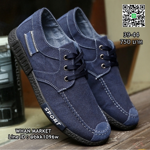 รองเท้าผ้าใบผู้ชาย แฟชั่นนำเข้า สไตล์สปอต วัสดุผ้าใบอย่างดี มีเชือกผูก