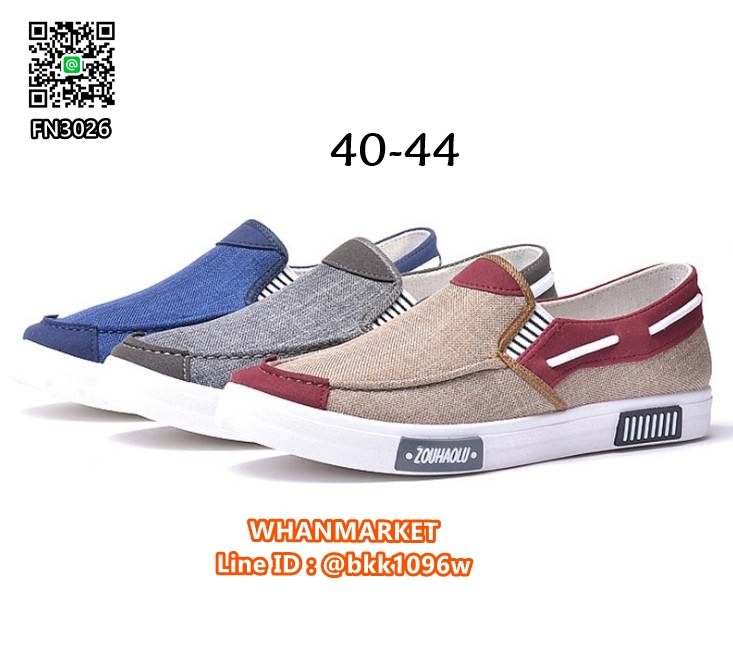 WhanMarketรองเท้าผ้าใบผู้ชาย แบบสวม วัสดุผ้าแคนวาสเนื้อหนาคุณภาพดี พื้นยาง 2 c.m. แต่งขอบยางด้านหน้าเพิ่มความยืดหยุ่นและความสะดวกสบายในการสวมใส่ ทรงกระชับ โทนสีดูสบายตาแต่แฝงไปด้วยดีเทลที่โดดเด่น รีบสั่งกันนะคะ