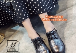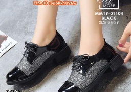 WhanMarketรองเท้าคัชชู ทรงอ๊อกฟอร์ด Oxford Shoes วัสดุหนัง pu แบบมันวาว ตรงกลางรองเท้าแต่งกลิตเตอร์วิ้งๆ แฟชั่นนำเข้า ดีไซน์สุดเท่ห์ ใส่สบาย งานสวย match ได้กับทุกชุด บอกเลยคู่นี้สาวๆ ห้ามพลาดเด็ดขาดนะคะ