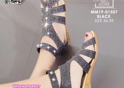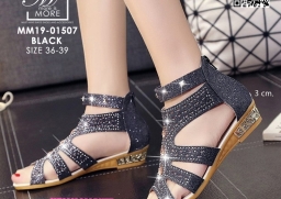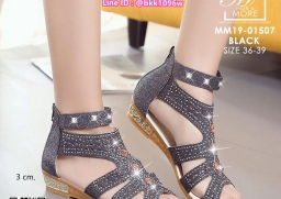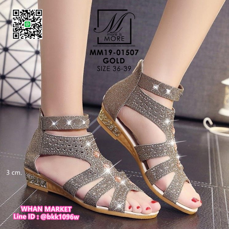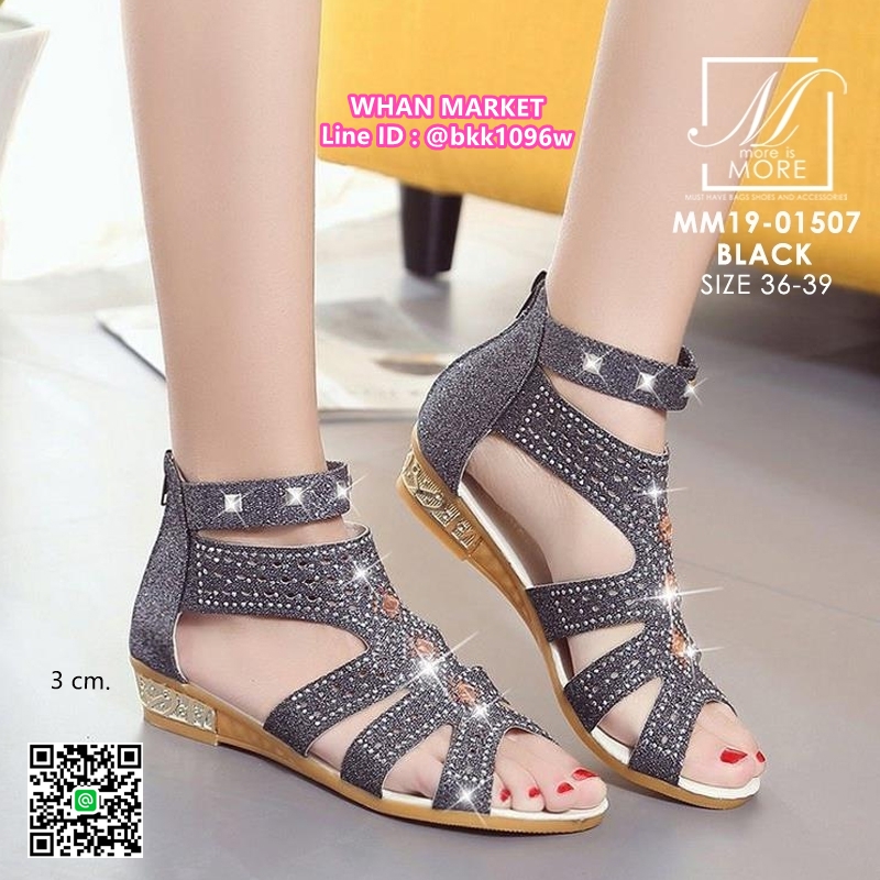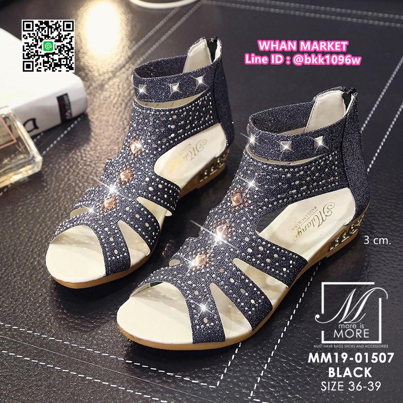 WhanMarketรองเท้าลำลอง วัสดุหนัง pu ผสมกลิตเตอร์ฉลุลาย แต่งสายสายรัดข้อด้วยหมุด ส้นรองเท้าแบบส้นเตารีด 3 cm. มีซิปหลัง ใส่ง่าย เดินง่าย สวยดูดี เท่ห์โดนใจ คู่นี้สาวๆ ห้ามพลาดเด็ดขาดเลยนะคะ