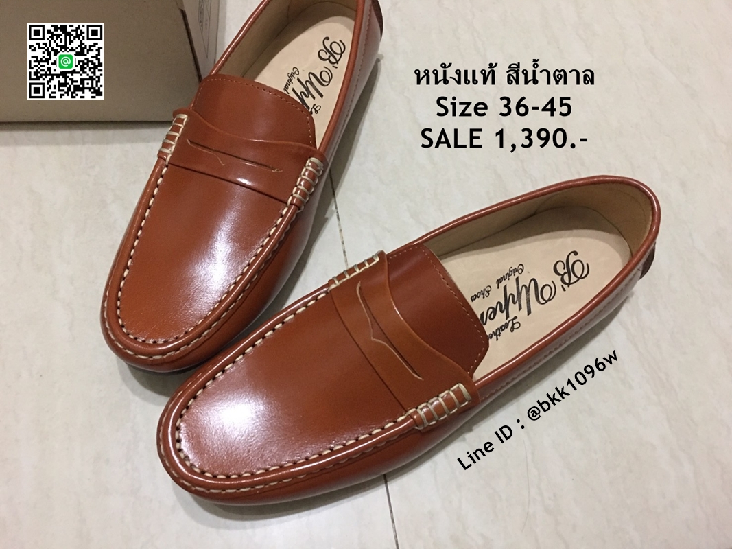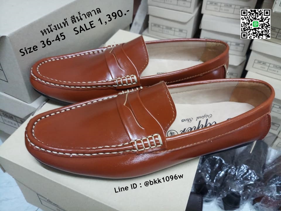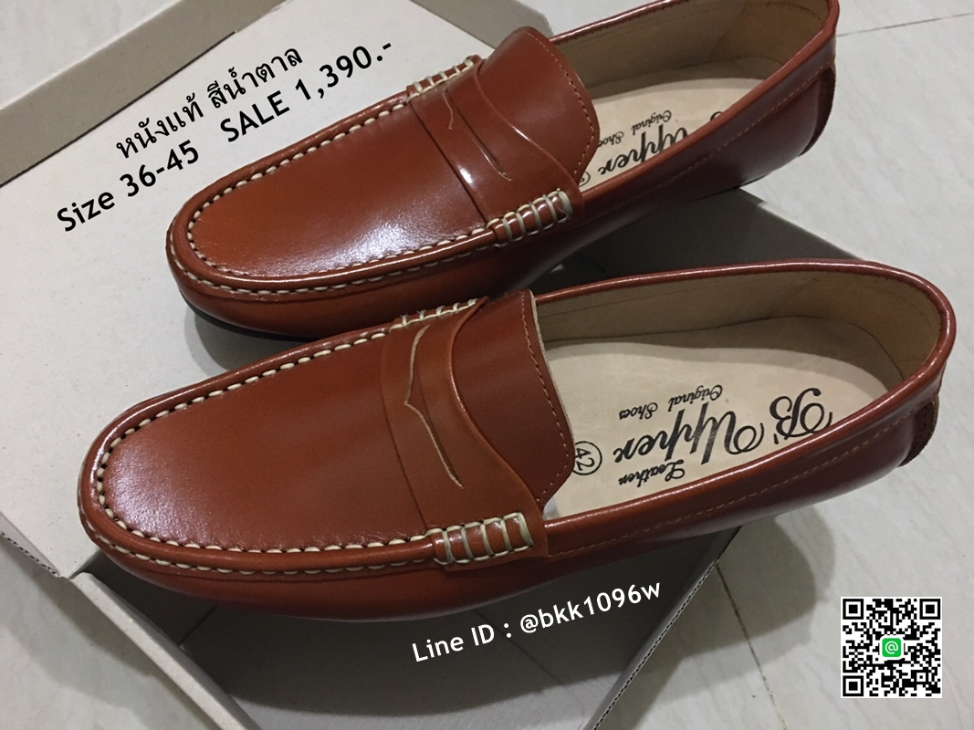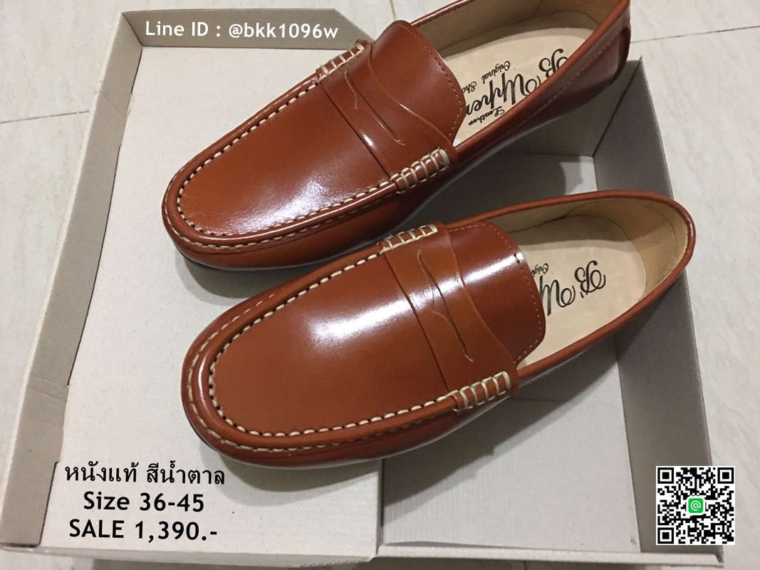 WhanMarketรองเท้าคัชชูหนังแท้ สีน้ำตาล แต่งตะเข็บขาว วัสดุหนังแท้คุณภาพดี แบบสวม ใส่ง่าย ใส่สบาย งานสวย จับแมทกับชุดอะไร ก็ดูเท่ แถมใส่ได้ตลอดไม่มีเอ้าท์ รีบสั่งด่วนๆ ช้าหมดอดน่ะจร๊ะ