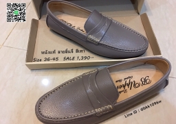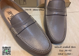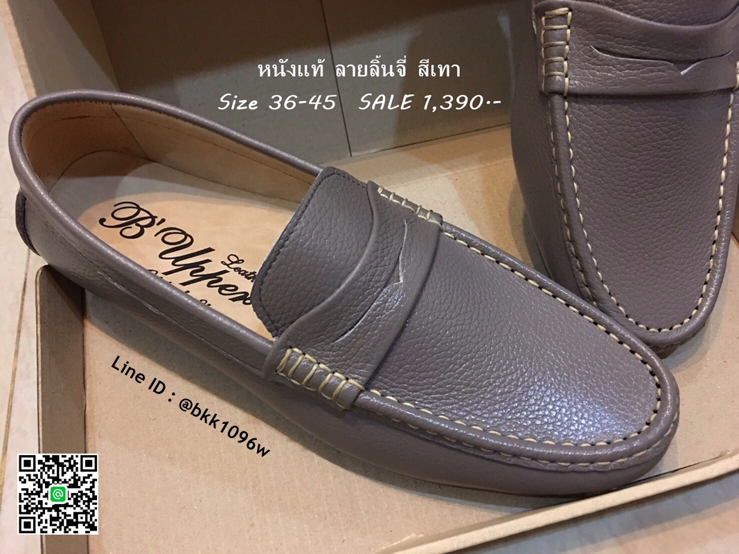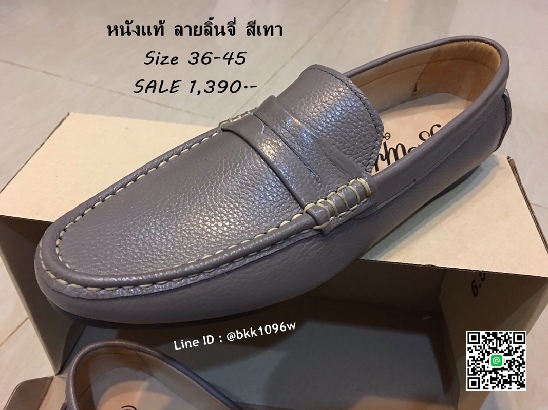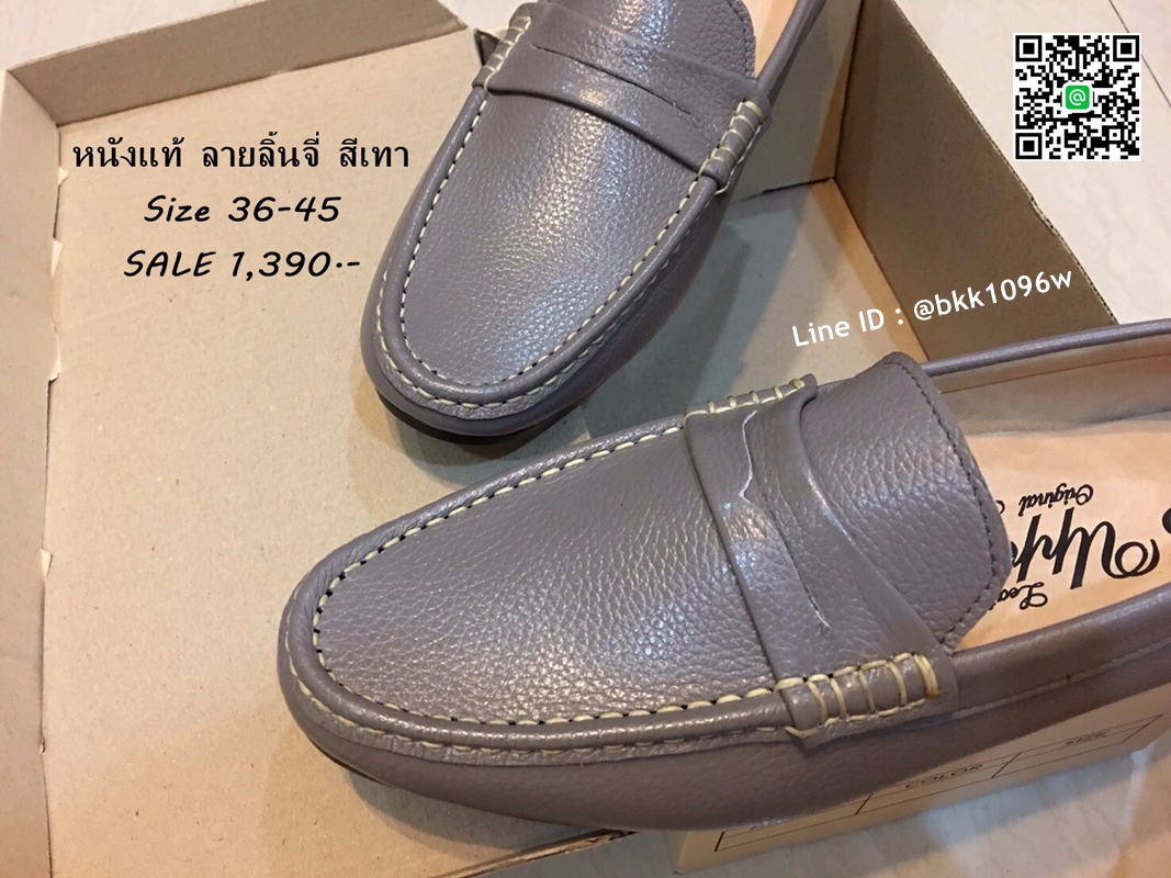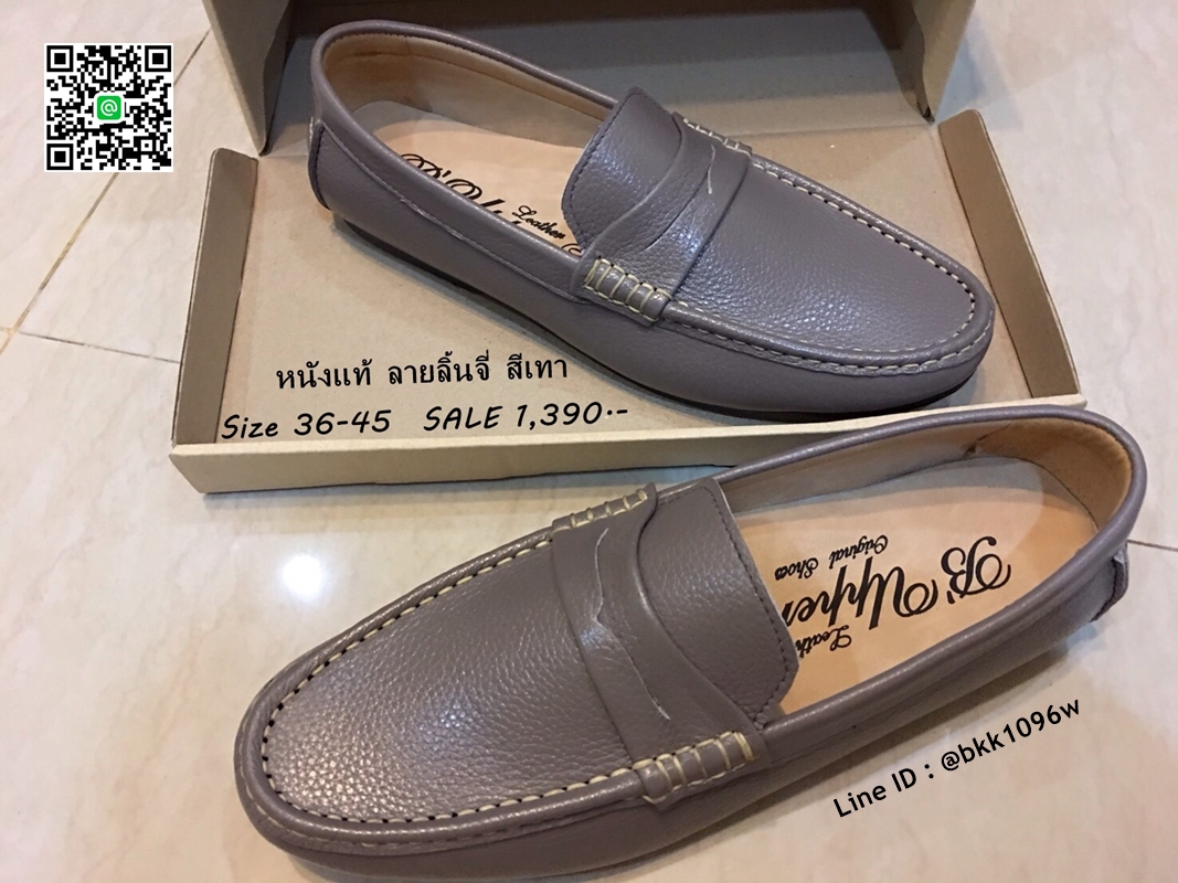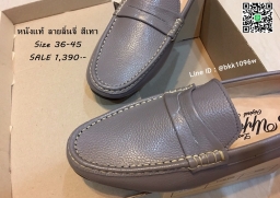 WhanMarketรองเท้าคัชชูหนังแท้ลายลิ้นจี่ สีเทา ตะเข็บขาว พื้นเรียบ วัสดุหนังแท้คุณภาพดี แบบสวม ใส่ง่าย ใส่สบาย งานสวย จับแมทกับชุดอะไร ก็ดูเท่ แถมใส่ได้ตลอดไม่มีเอ้าท์ รีบสั่งด่วนๆ ช้าหมดอดน่ะจร๊ะ