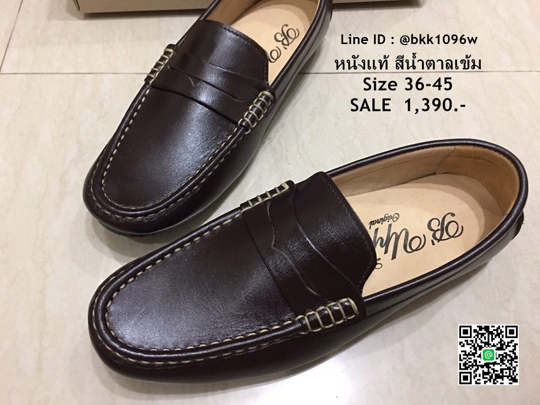 WhanMarketรองเท้าคัชชูหนังแท้ สีน้ำตาลเข้ม ตะเข็บขาว พื้นเรียบ แบบสวม วัสดุหนังแท้คุณภาพดี ใส่ง่าย ใส่สบาย งานสวย จับแมทกับชุดอะไร ก็ดูเท่ แถมใส่ได้ตลอดไม่มีเอ้าท์ รีบสั่งด่วนๆ ช้าหมดอดน่ะจร๊ะ