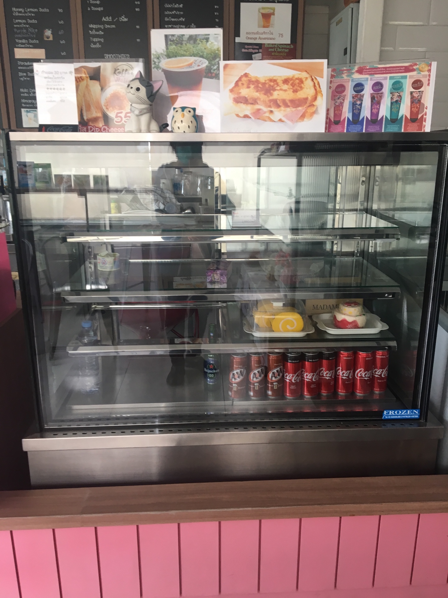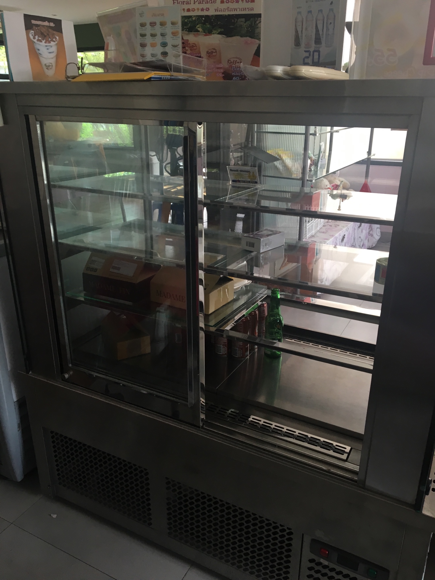 อรขายถูกราคาพิเศษ ตู้เค้กขนาด 120 เซนติเมตร งานสั่งผลิต มีชั้นวางของ 4 ชั้น สภาพใหม่มาก ใช้งานน้อย