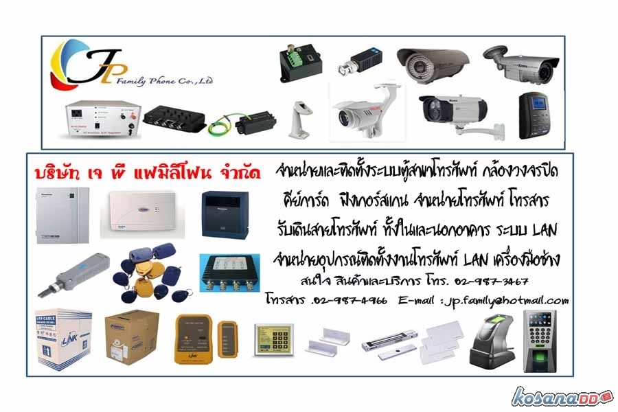 จำหน่ายและติดตั้งระบบ กล้องวงจรปิด กล้องวงจรปิดแบบไร้สาย ตู้สาขาโทรศัพท์PABX โทรศัพท์ PANASONIC เครื่องสแกนนิ้ว/หน้า ระบบเปิด-ปิด ประตู สัญญาณกันขโมย ไม้กั้นไม้กระดก เครื่องดักฟัง สัญญาณกันขโมย จำหน่ายและรับเดินสาย LAN สายโทรศัพท์ สายเคเบิ้ล ทั้งในและนอกอาคาร อุปกรณ์เสริมอื่น รับซ่อมแก้ไข ปรับปรุงระบบ โดยช่างผู้ชำนาญงาน มากกว่า 20 ปี ติดต่อสอบถาม 02-987-3467 081-909-3920 หรือที่ www.yuwanee.com